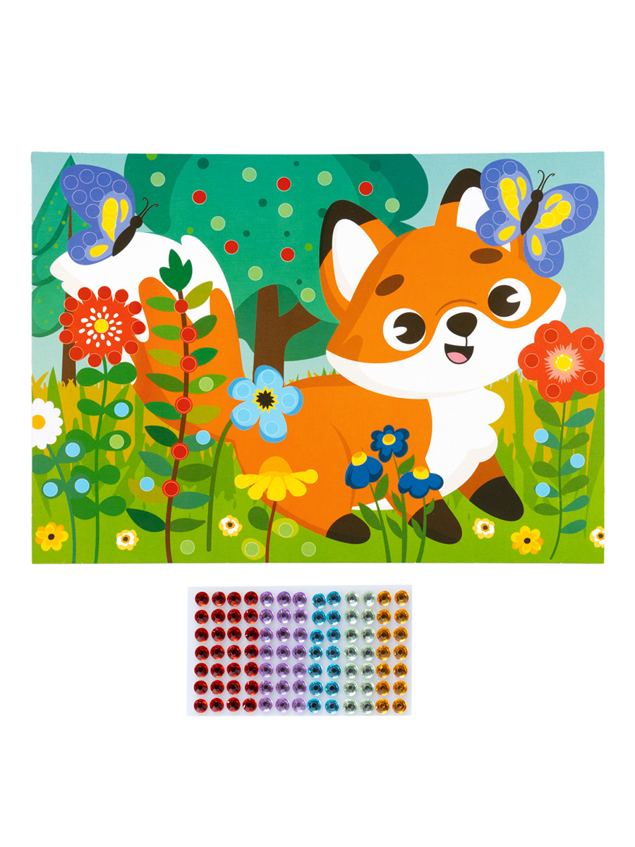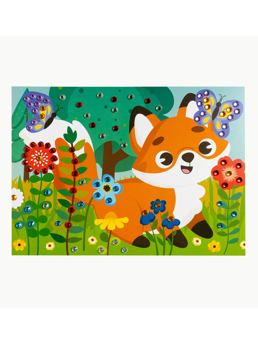Рисунок из страз «Лисёнок» с изображением милого животного позволит Вашему ребенку с удовольствием и пользой провести время.Украсив рисунок яркими разноцветными стразами, ребенок сделает оригинальную сияющую картину, которая несомненно украсит интерьер детской комнаты.