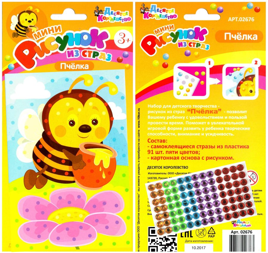 Состав детского мини-рисунка из страз «Пчелка»: