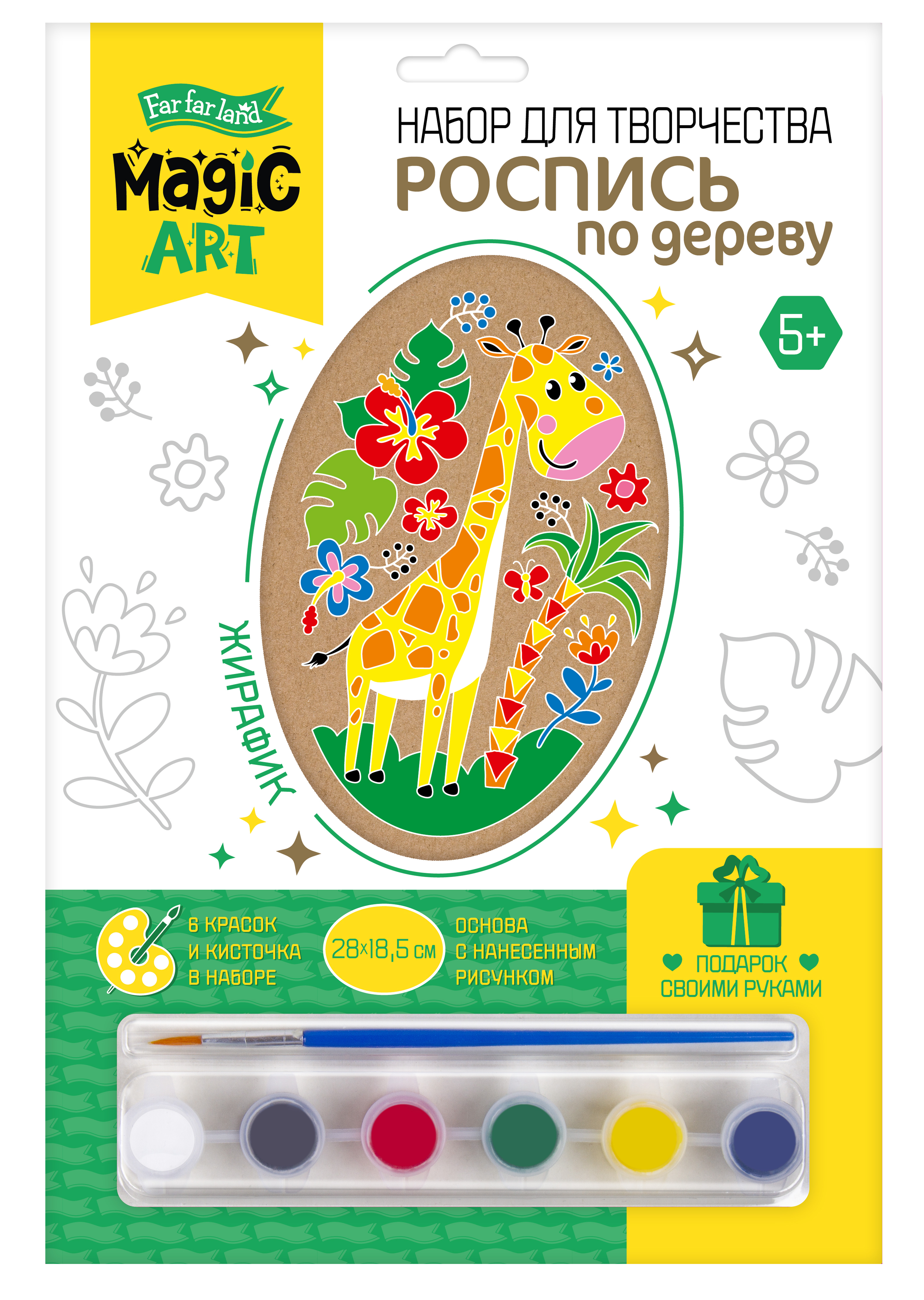 Набор Роспись по дереву «Жирафик» развивает творческие способности, образное мышление, фантазию, чувство цвета и мелкую моторику.