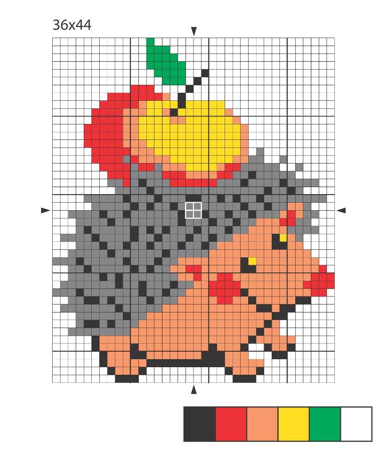 2. Начинайте работу с определения центра канвы, сложив кусок ткани два раза пополам, аккуратно пометьте его карандашом. Совместите центр канвы с центром вышивки, обозначенным на схеме квадратиком (квадратиками) с контрастным контуром и стрелками.3.
