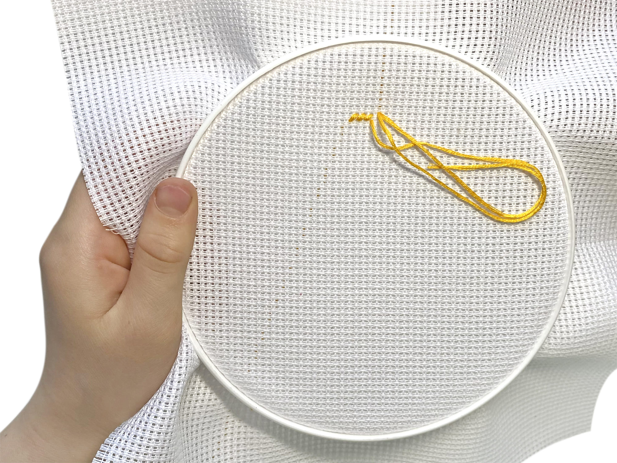 С помощью образовавшейся на конце нити петельки, закрепите нить с изнанки, так как показано на рис.2.