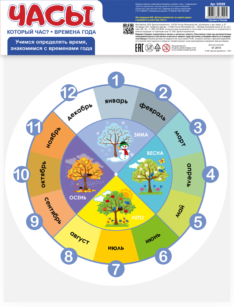 Игра развивающая "ЧАСЫ. Который час. Времена года" (двусторонние) Вместе с этим товаром покупают: