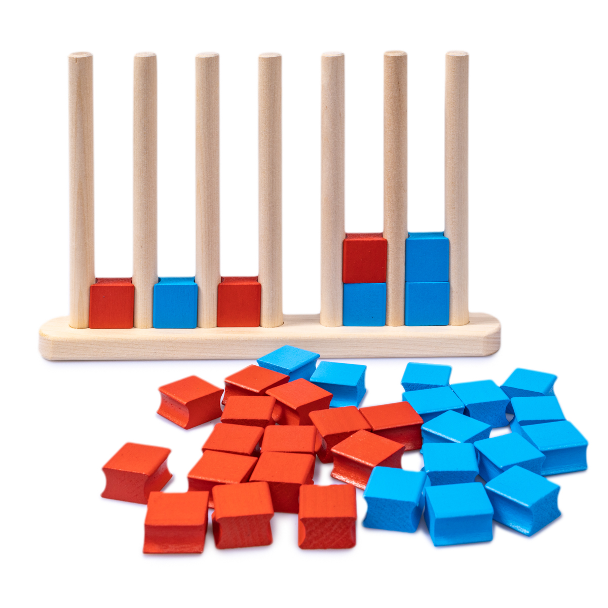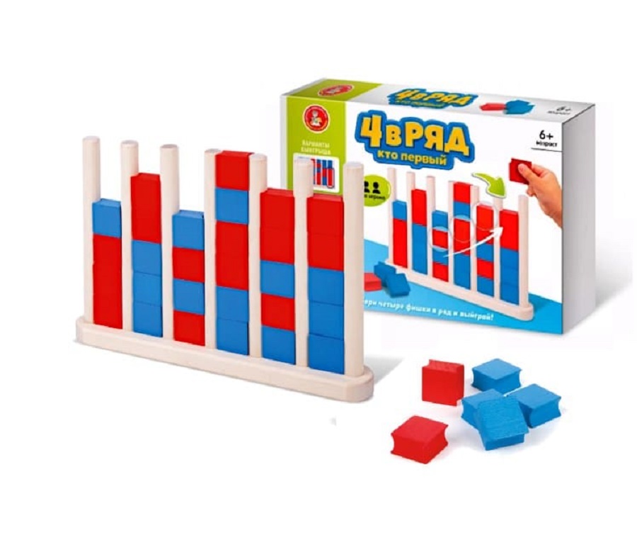 Настольная игра «4 в ряд. Кто первый» развивает счётные навыки, логику, сообразительность, внимательность, пространственное мышление и мелкую моторику.