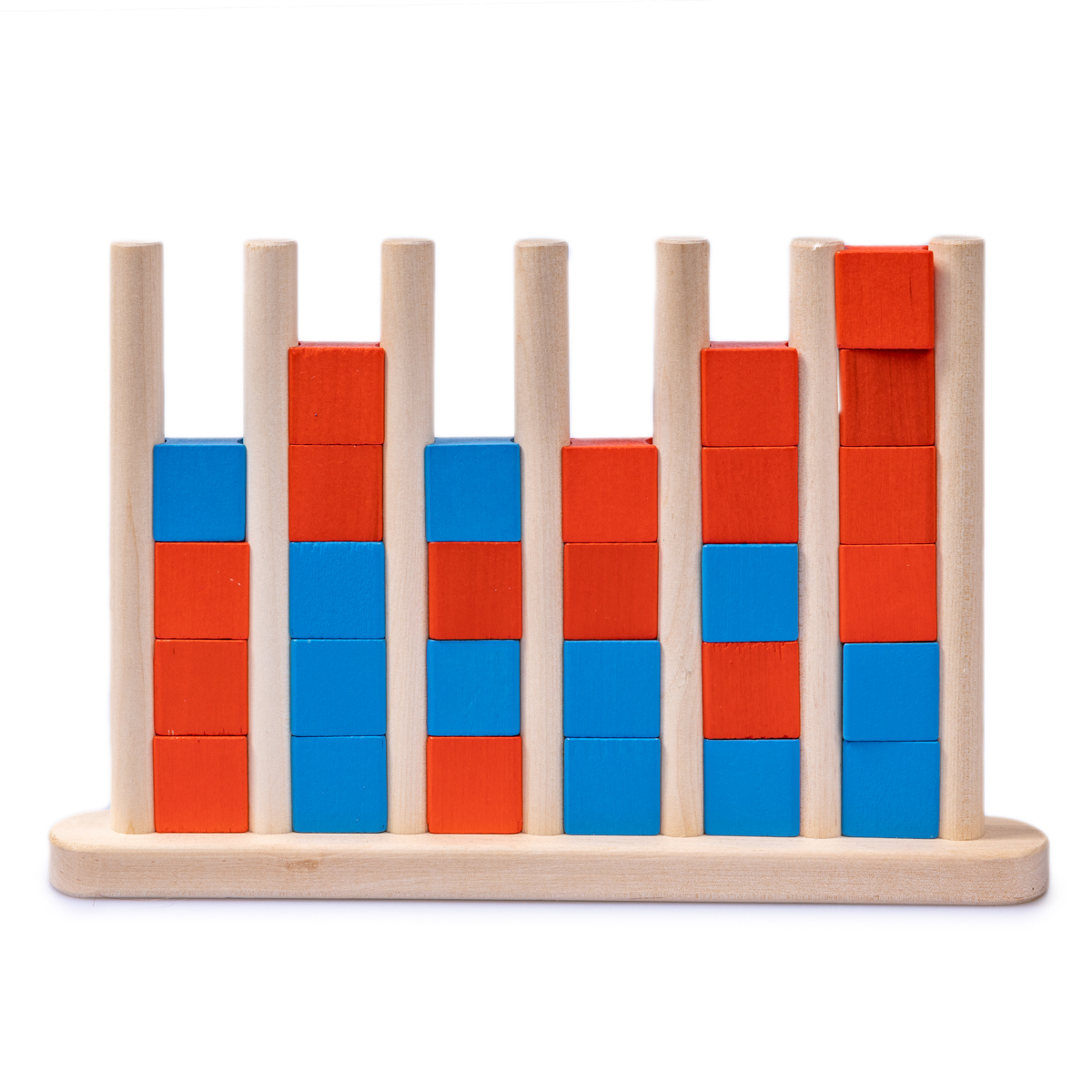 Каждый игрок получает все фишки одного цвета. Игроки друг за другом вставляют вдоль направляющих столбиков по одной фишке. Старайтесь размещать свои фишки рядом друг с другом и одновременно прерывать ряды фишек противника на самых ранних этапах. Игроки продолжают делать ходы, пока одному из них не удастся закончить ряд.
