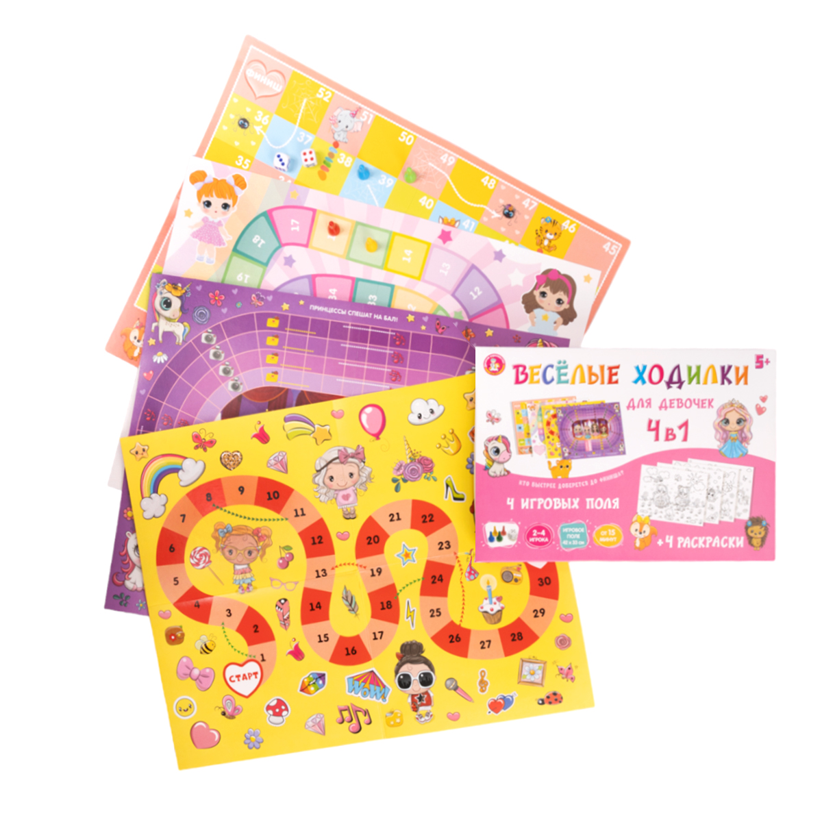 Игра-ходилка настольная "Веселые ходилки 4 в 1" для девочек (+4 раскраски) Вместе с этим товаром покупают: