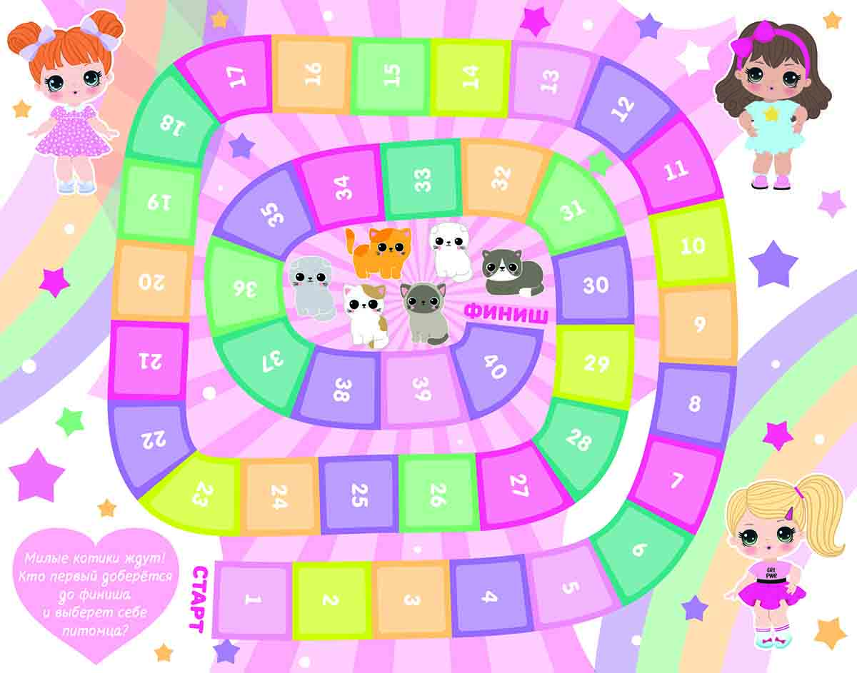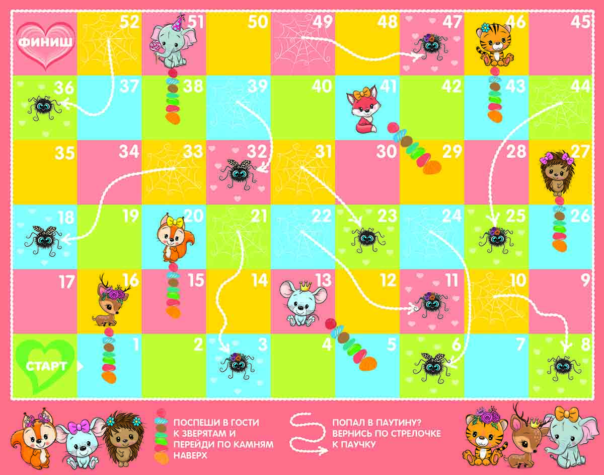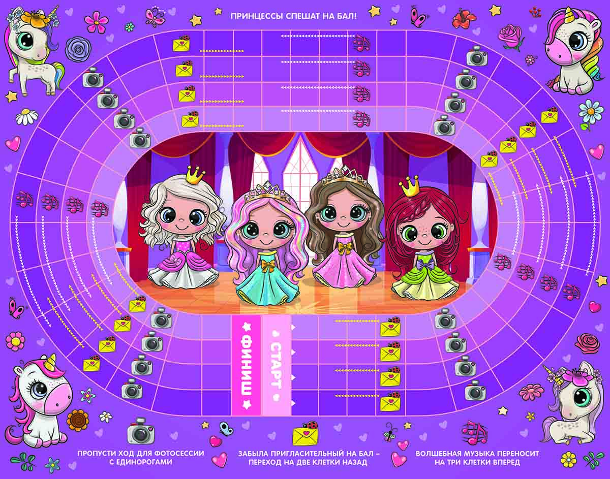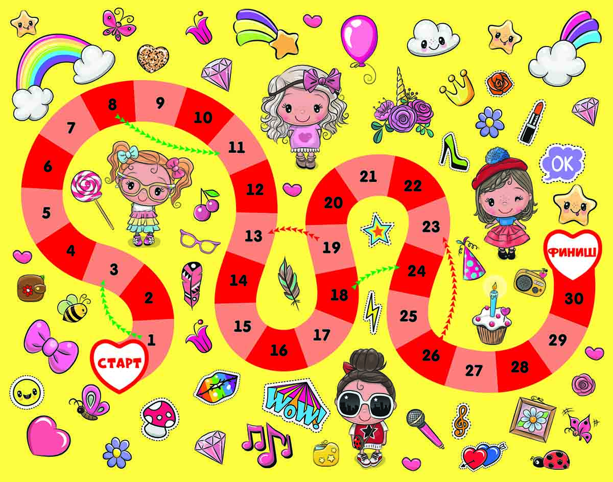 Настольная игра для девочек «Весёлые ходилки» 4 в 1 (раскраска)