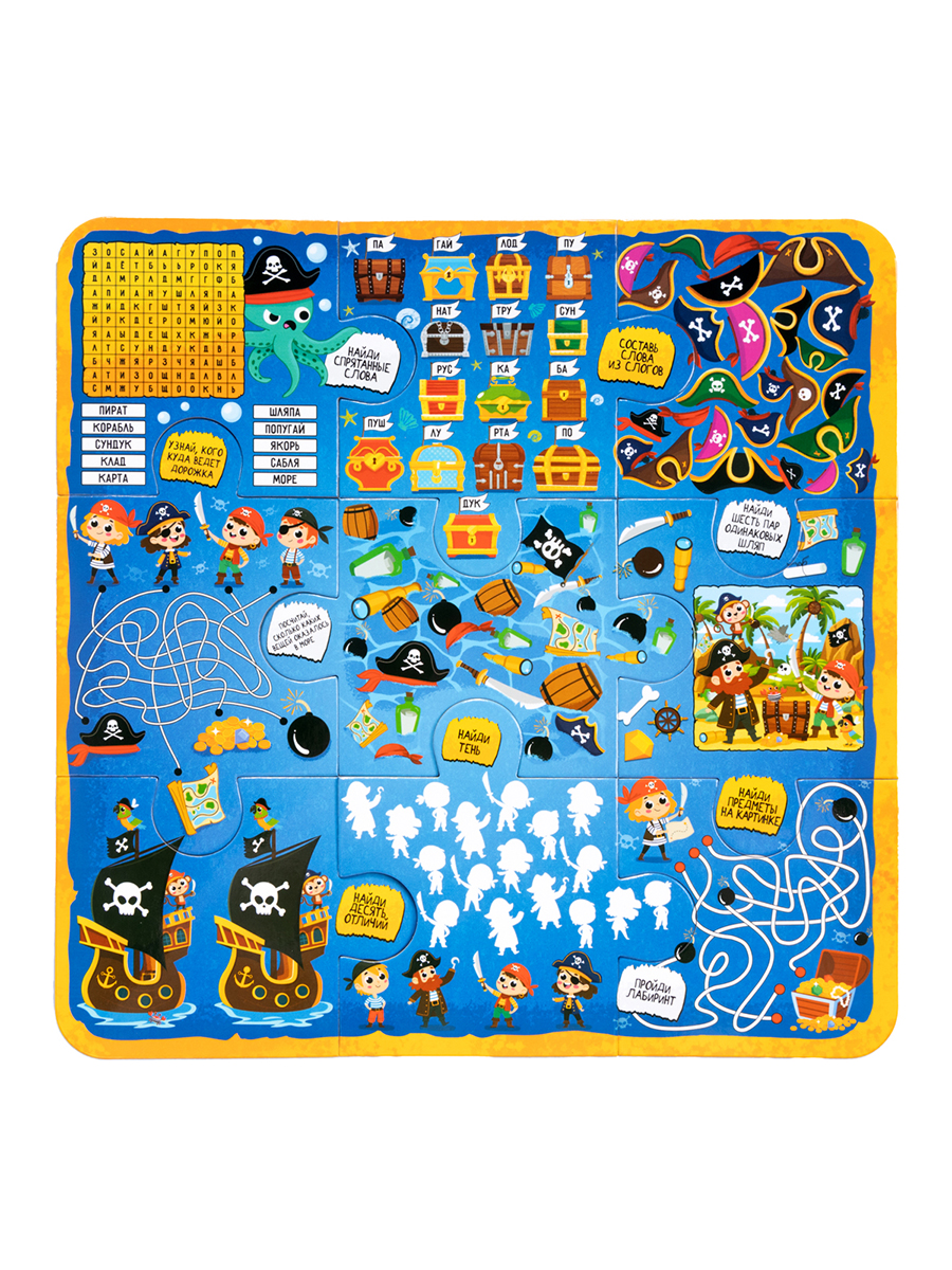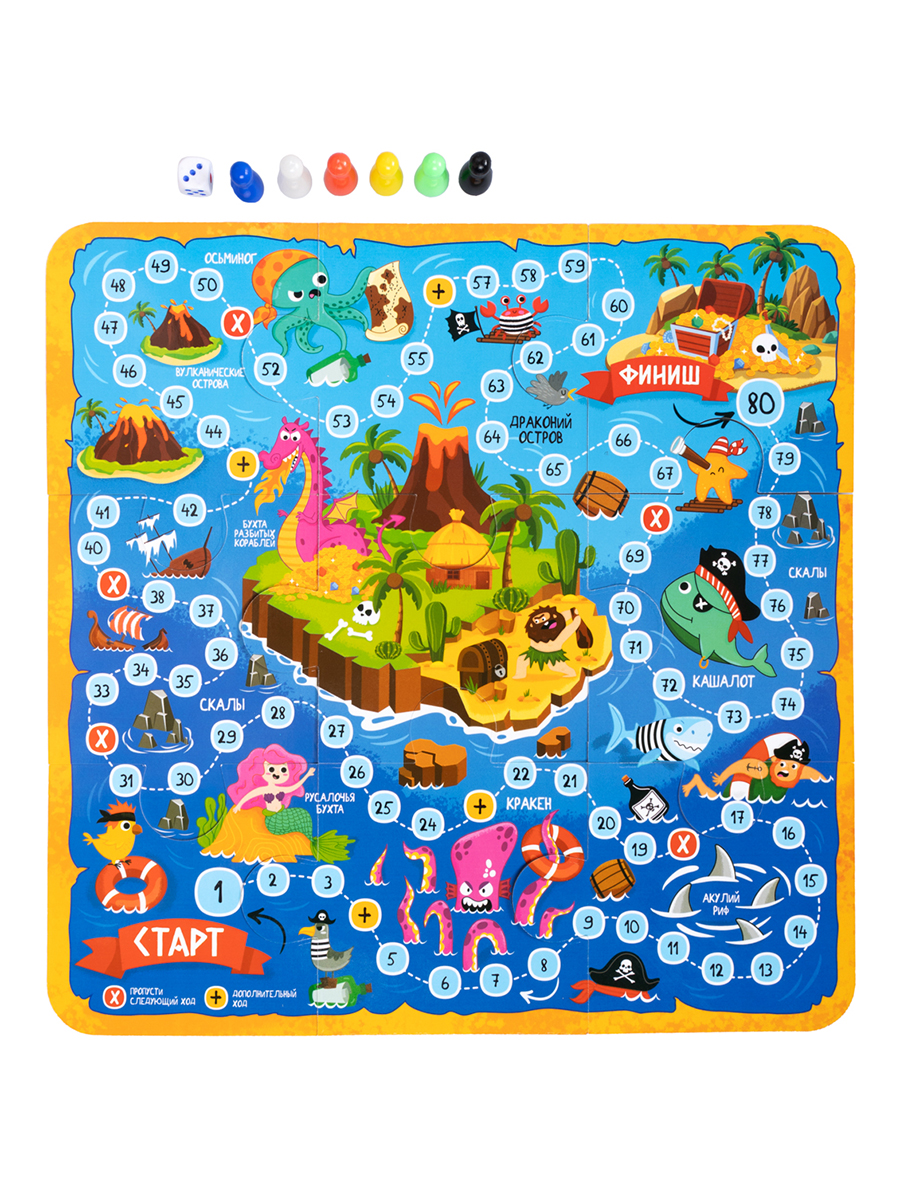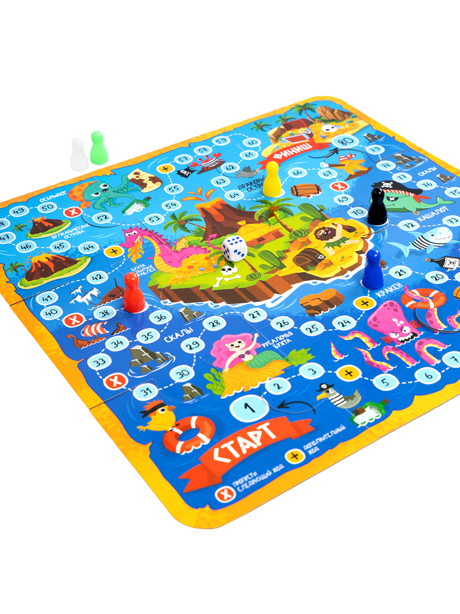 Настольная игра-ходилка «Пиратское приключение 10 в 1» - это игра, где за каждым пазлом скрывается задание, пройди лабиринты, найди клад, реши головоломки и преодолей все препятствия на пути к сокровищу. Ее главное преимущество – многообразие игровых режимов, способных удовлетворить самые разные предпочтения.