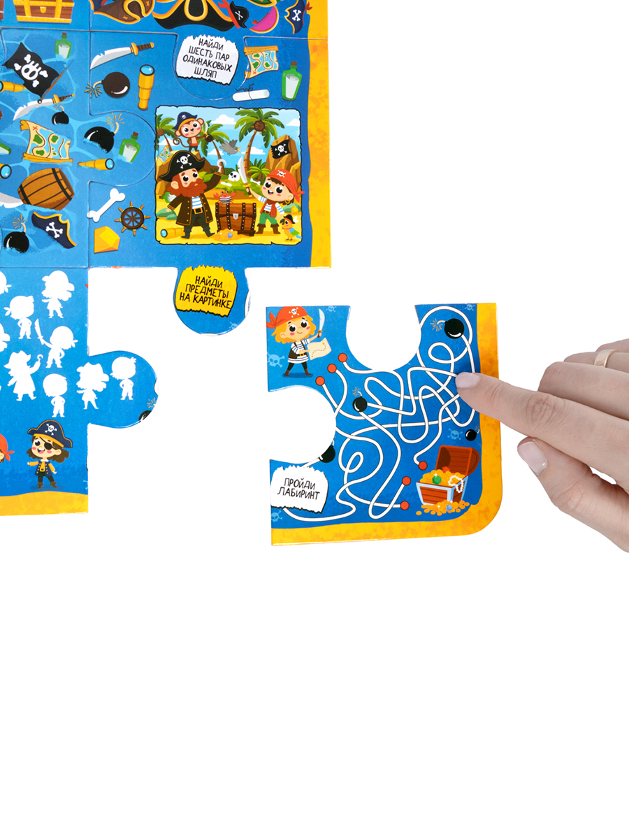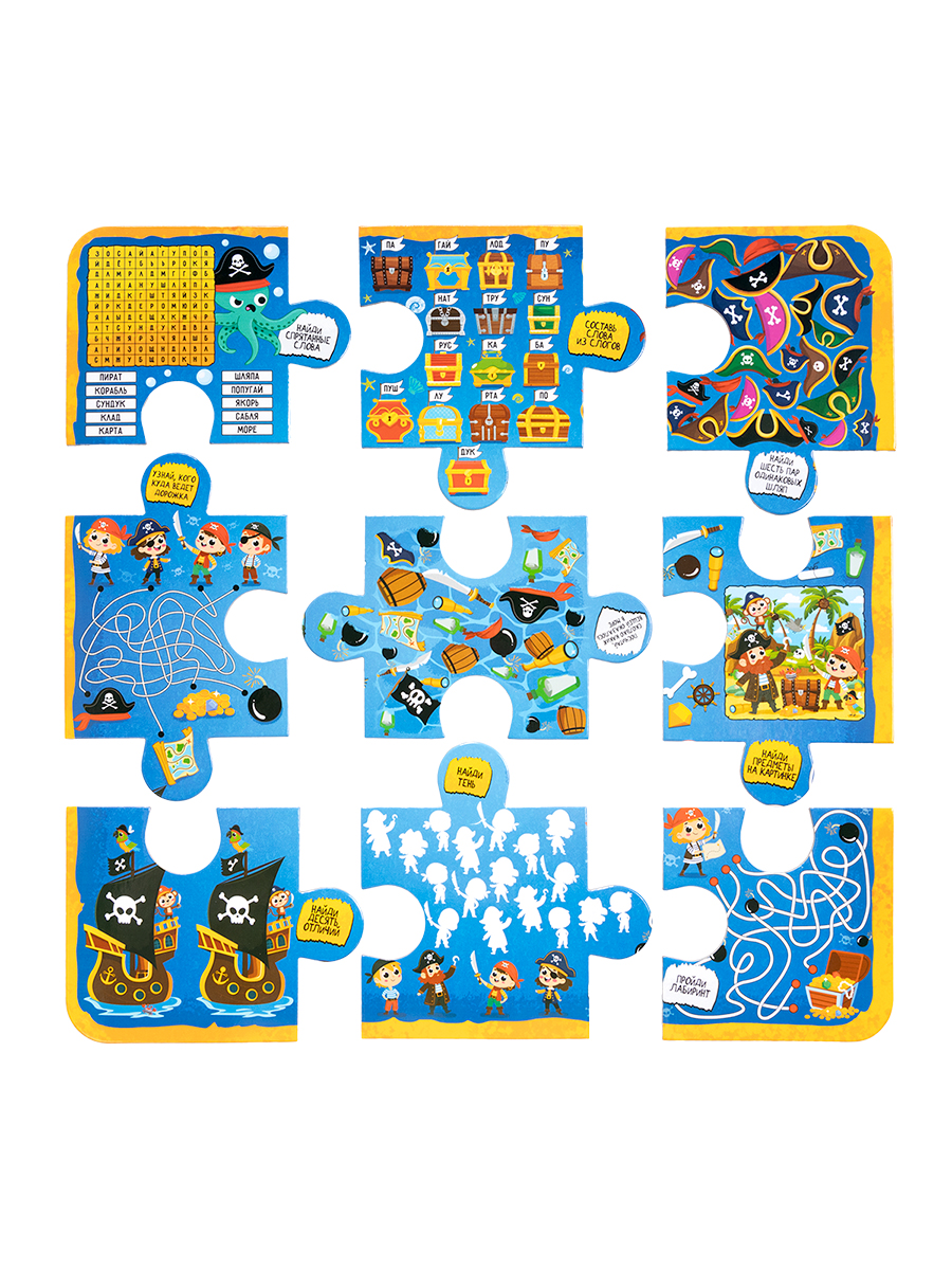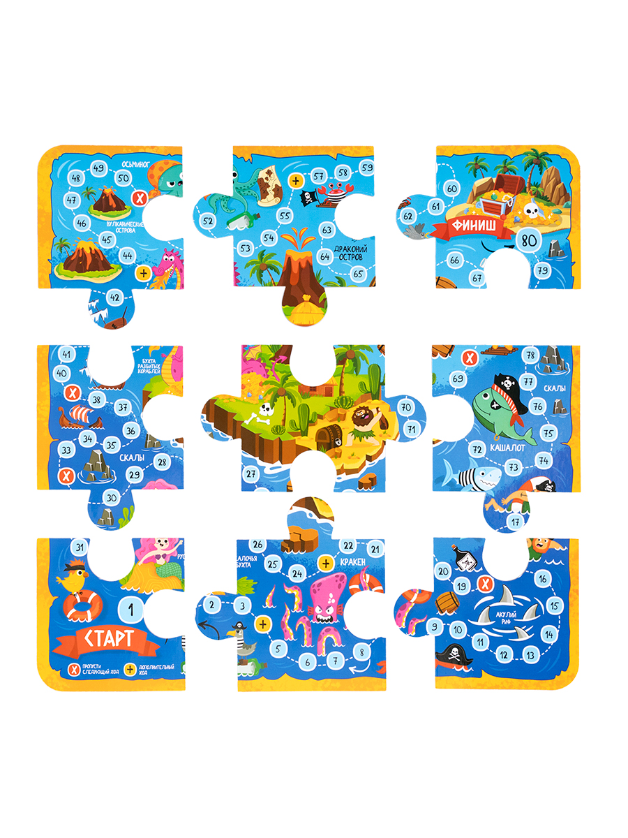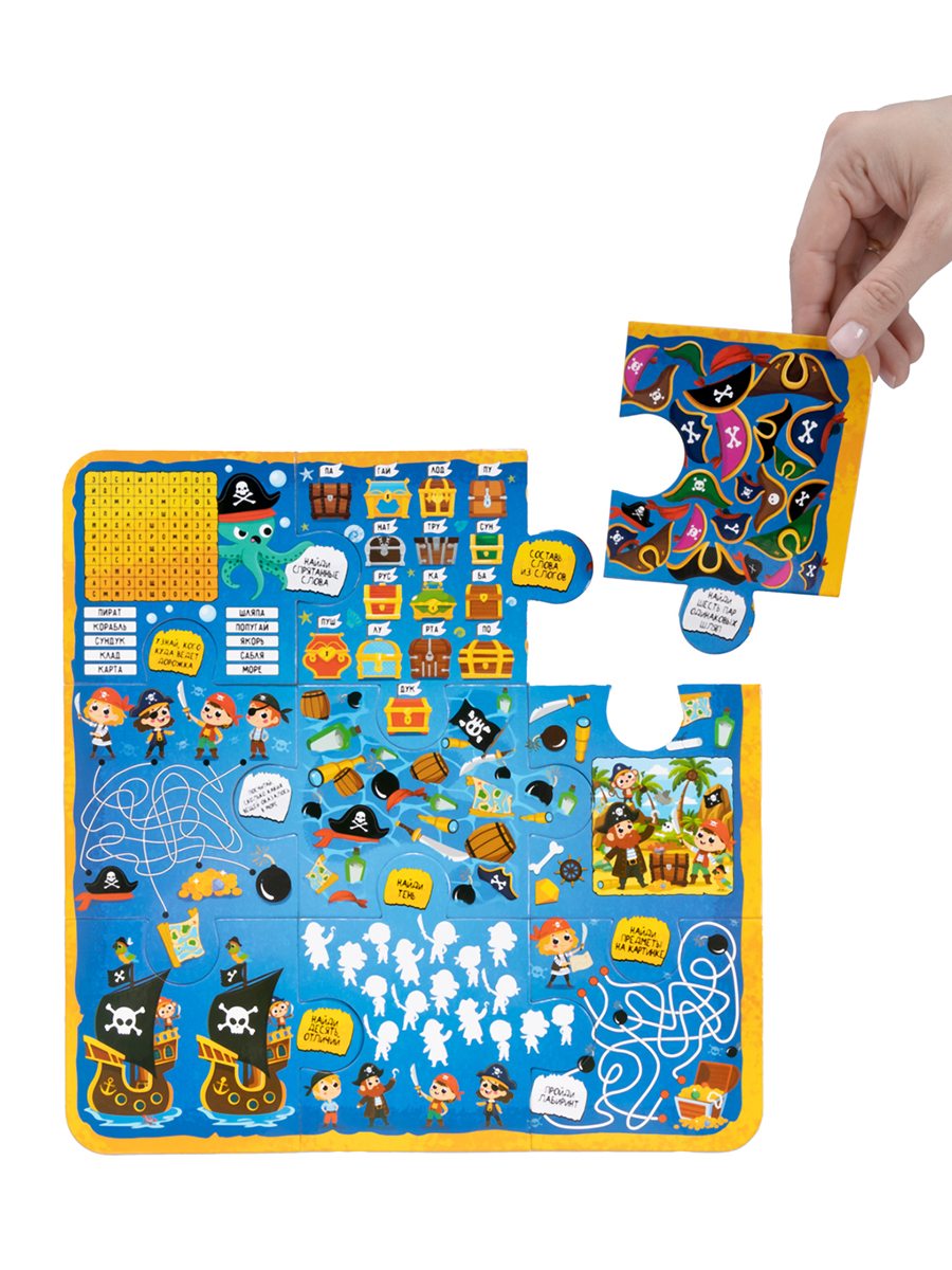 Настольная игра-ходилка «Пиратское приключение 10 в 1» - это игра, где за каждым пазлом скрывается задание, пройди лабиринты, найди клад, реши головоломки и преодолей все препятствия на пути к сокровищу. Ее главное преимущество – многообразие игровых режимов, способных удовлетворить самые разные предпочтения.