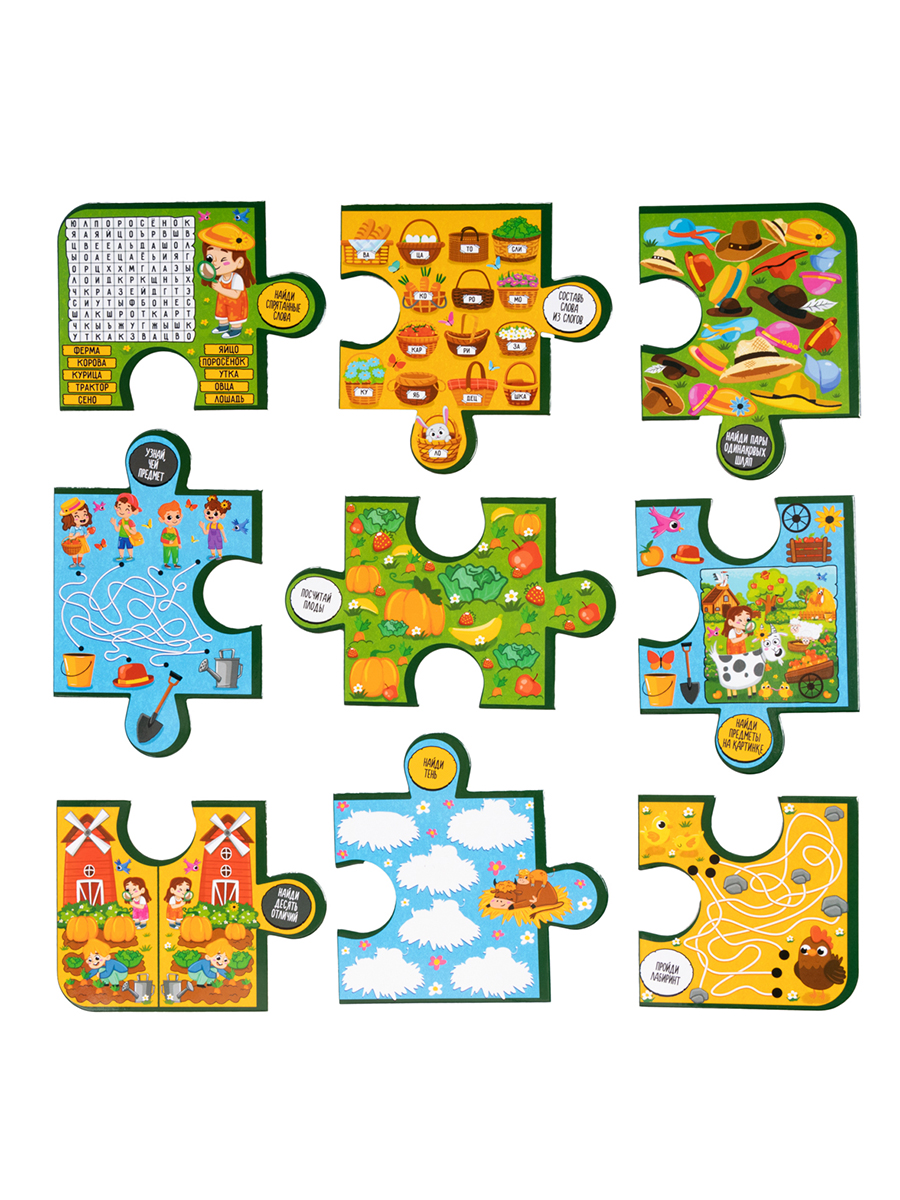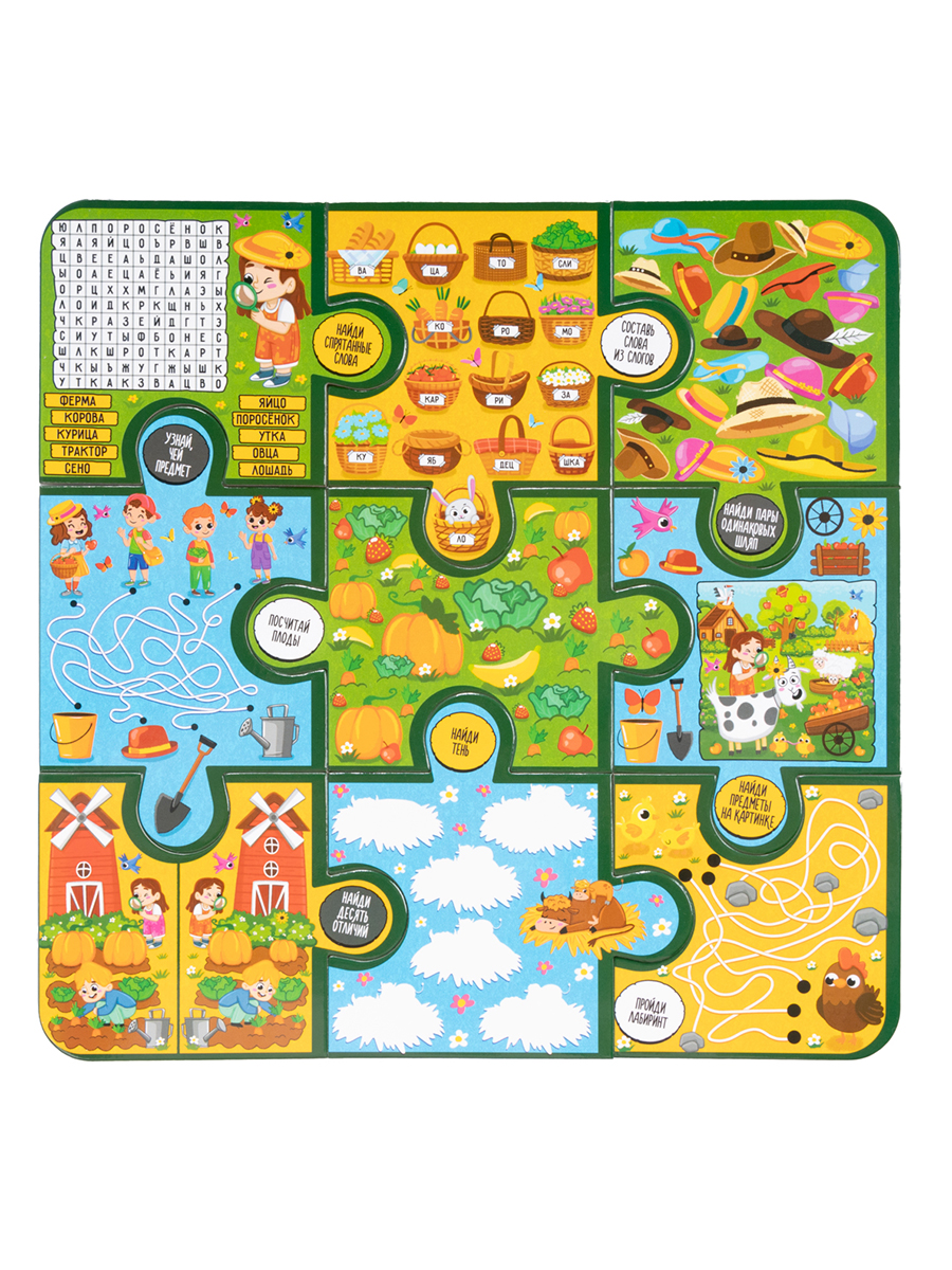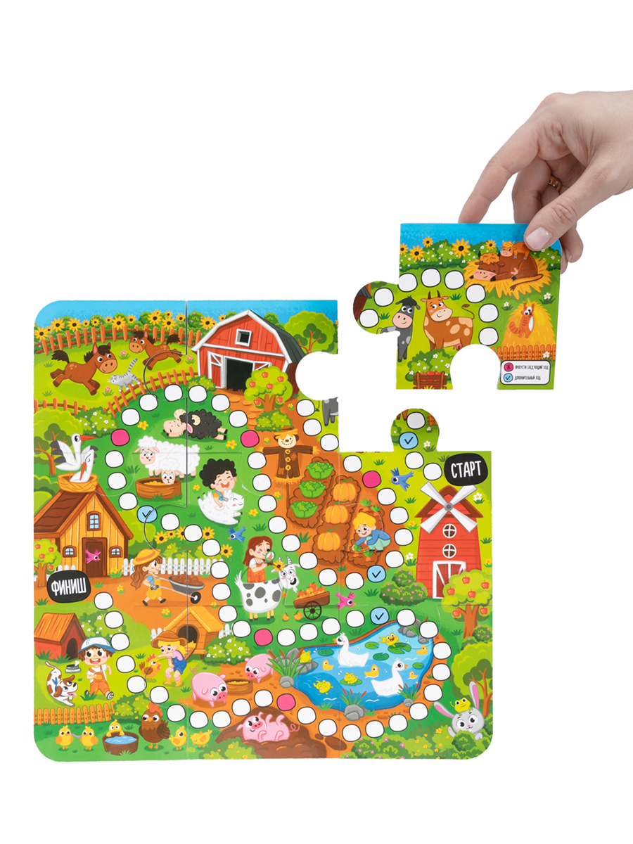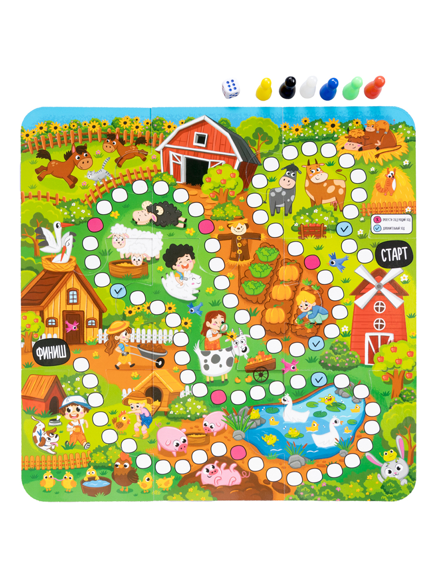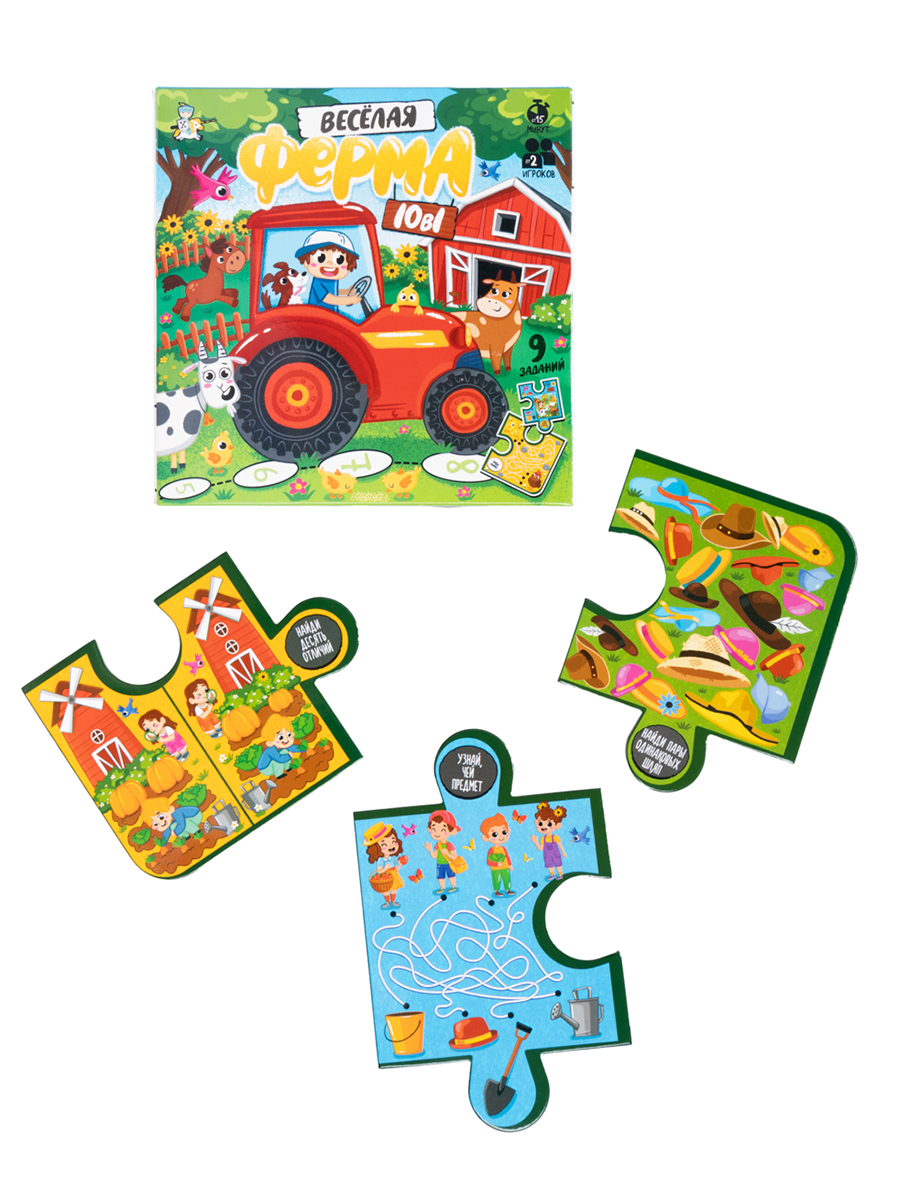 Настольная игра-ходилка «Весёлая ферма 10 в 1» - это игра, где за каждым пазлом скрывается задание, пройди лабиринты, найди клад, реши головоломки и преодолей все препятствия на пути к сокровищу. Ее главное преимущество – многообразие игровых режимов, способных удовлетворить самые разные предпочтения.