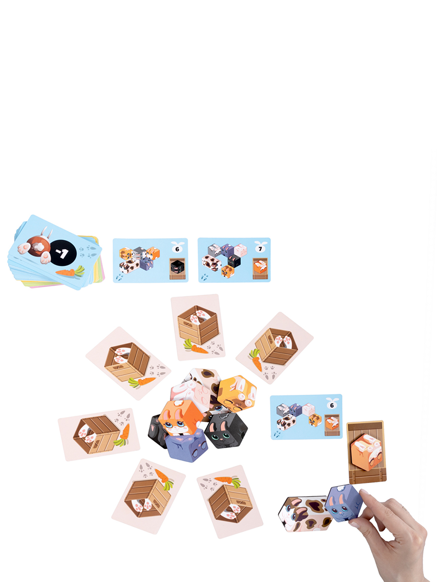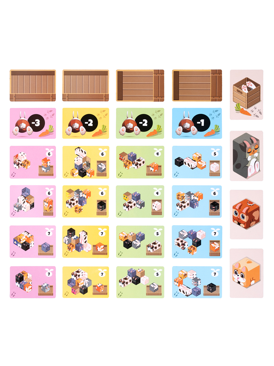 2. Перемешайте и разложите 8 карточек ящиков с животными вокруг фишек кроликов.