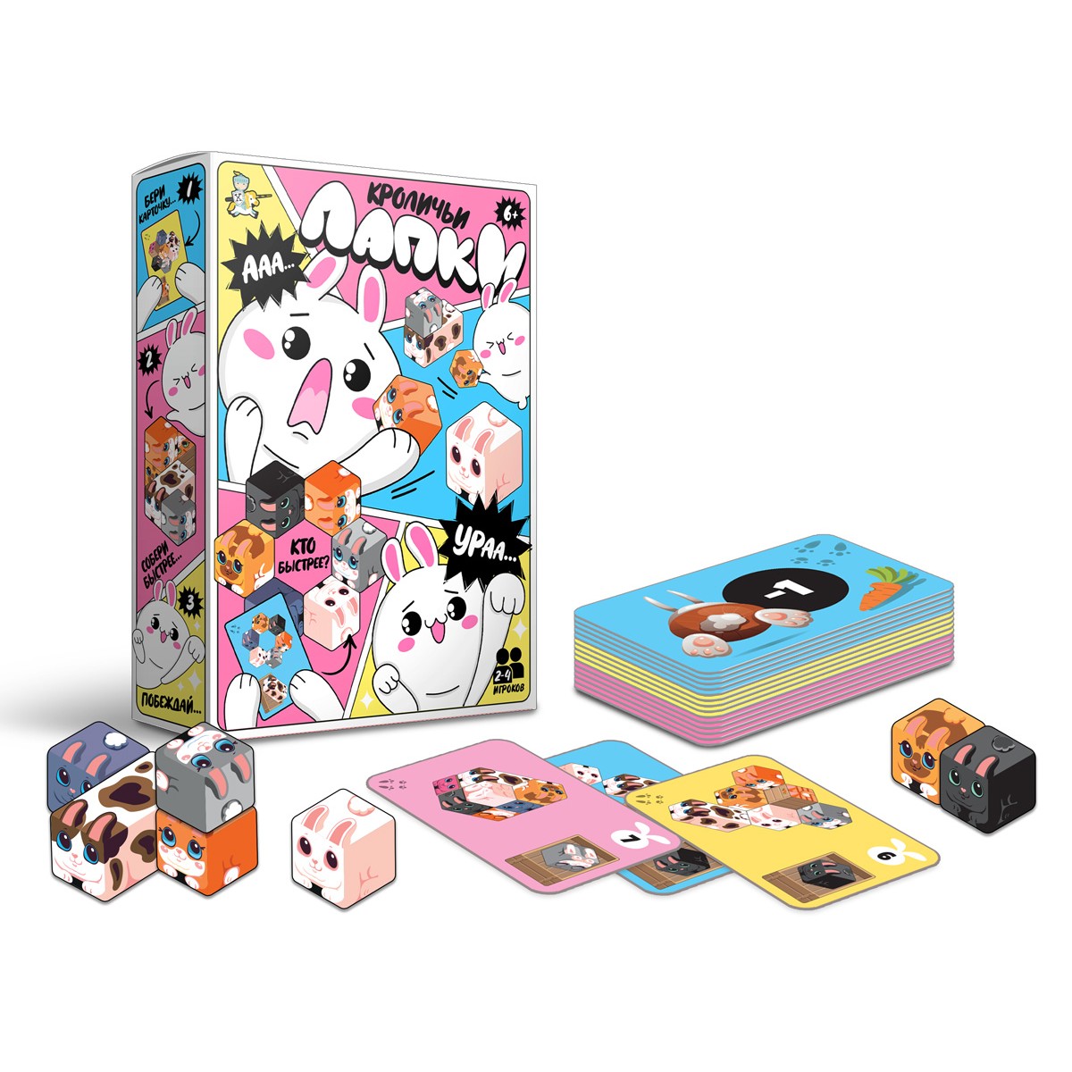 Настольная игра «Кроличьи Лапки» - это не просто игра, а настоящее испытание скорости, смекалки и молниеносной реакции, которое захватит вас с первых минут. Игроки стараются быстрее всех собрать пазл, изображенный на карточке с заданием, чтобы получить баллы. Состав: