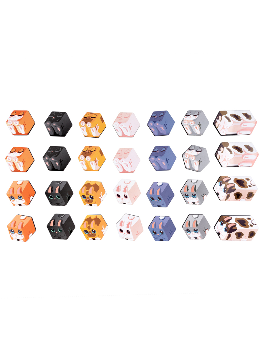 1. Разместите фишки кроликов в центре стола(по одному комплекту на каждого игрока) и перемешайте их.