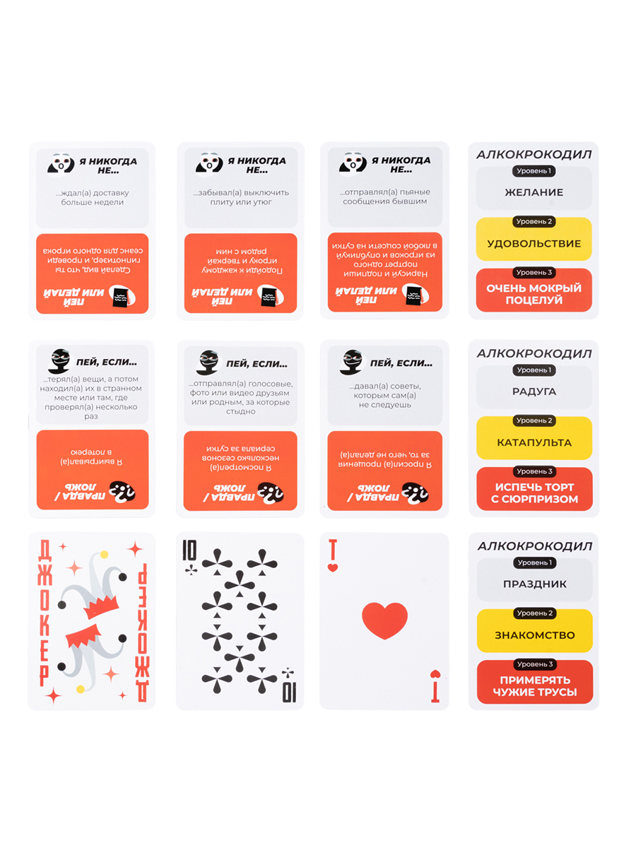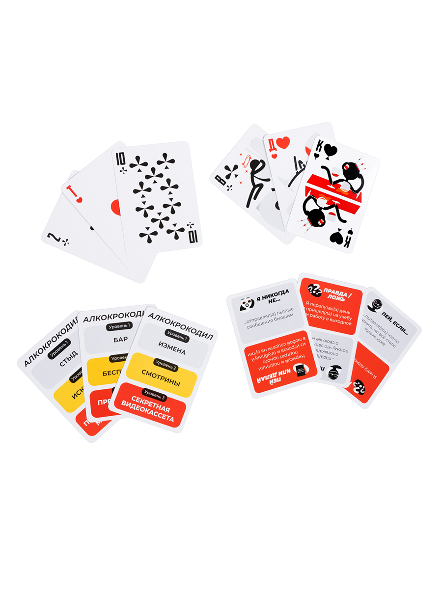 Внутри коробки вас ждет 21 игра, каждая из которых способна зажечь искру в любой компании. Здесь вы найдете все, что нужно для идеального вечера: от классических алкогольных игр с новыми, дерзкими правилами до оригинальных заданий, проверяющих вашу смекалку, артистизм и умение выходить за рамки. Забудьте о мыслях, как развлечь друзей – этот набор сделает все за вас. Просто откройте правила, выберите игру и наслаждайтесь безудержным весельем!