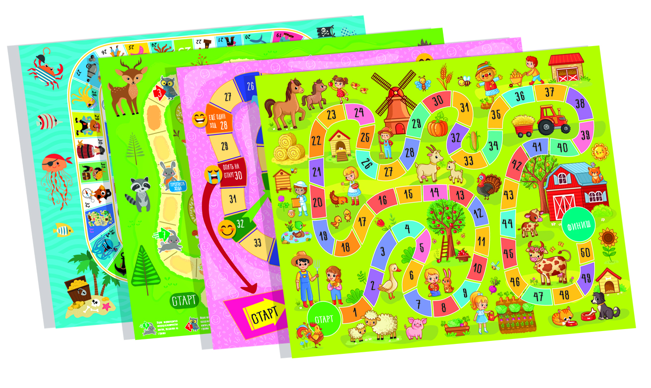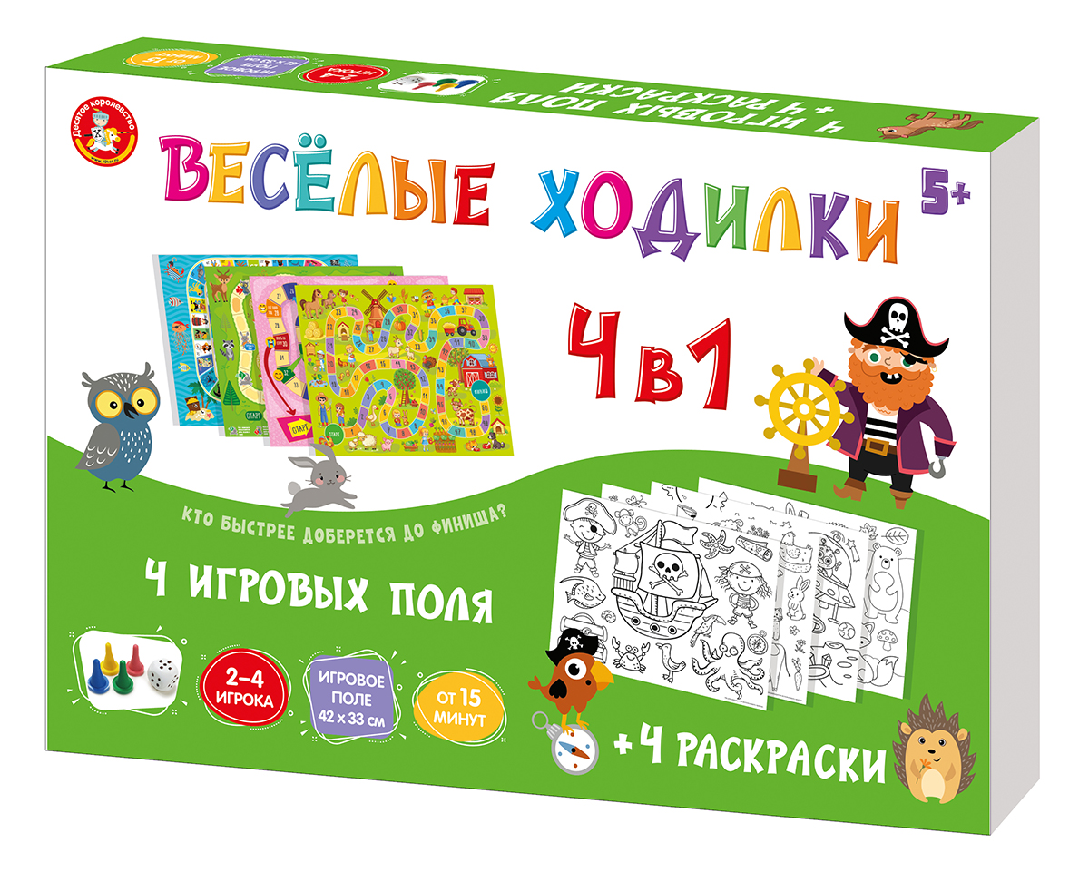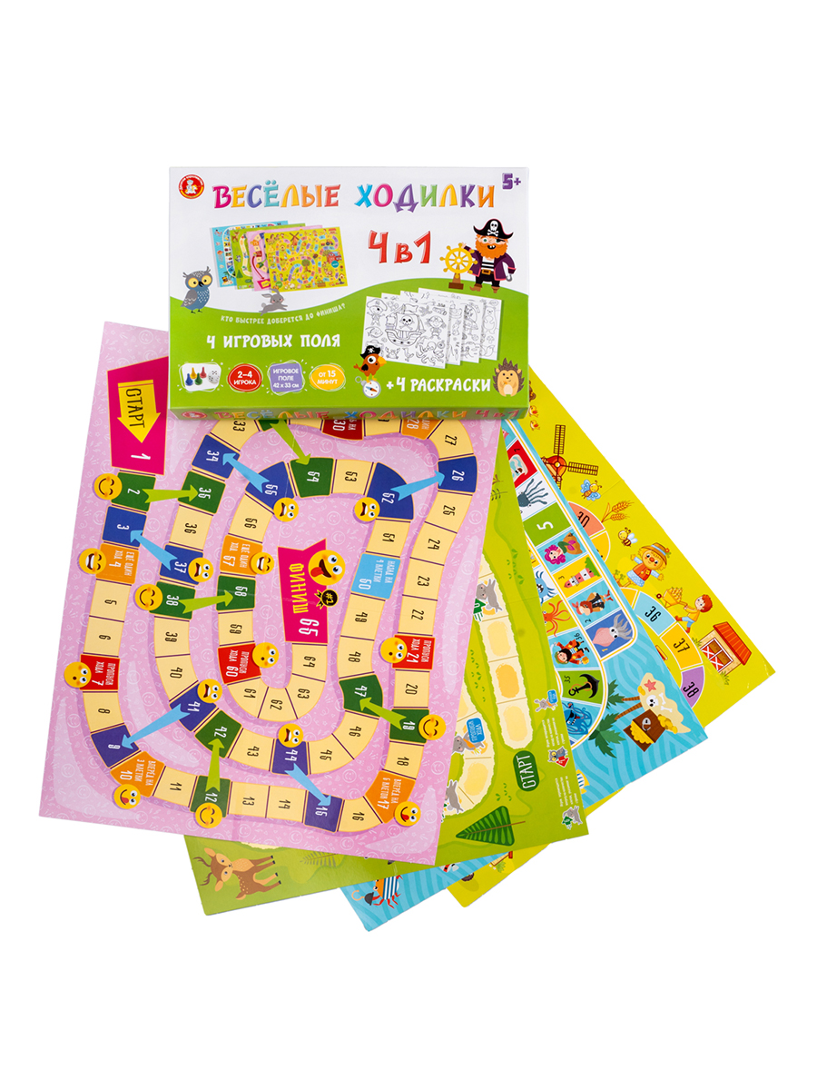 Настольная игра «Веселые ходилки 4 в 1» (ходилка-раскраска)