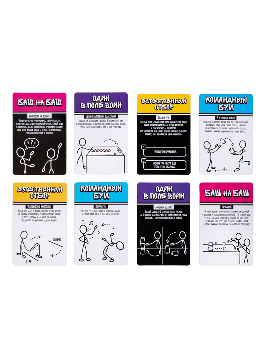 Готовы к безумным челленджам с настольной игрой «Весёлый баттл»!? Это игра для взрывных эмоций и драйва. Простые правила, интересные задания, заставят вас проявить смекалку и ловкость. Собирай друзей или семью, тяните карточки и соревнуйтесь за титул короля вечера! Это развлечение, наполнит смехом любой вечер.