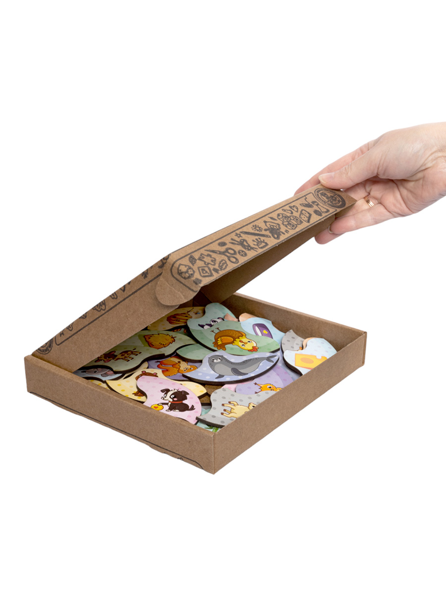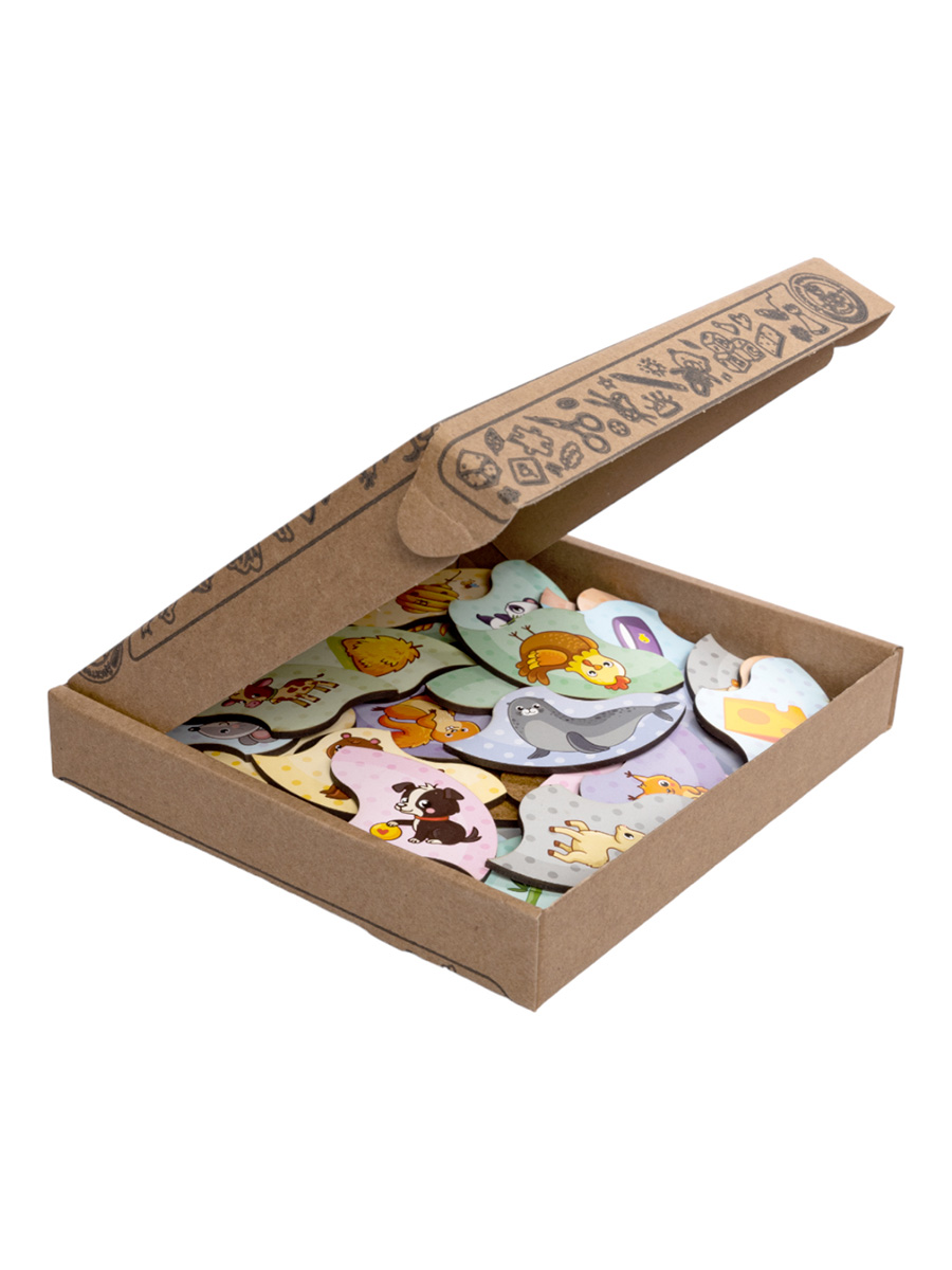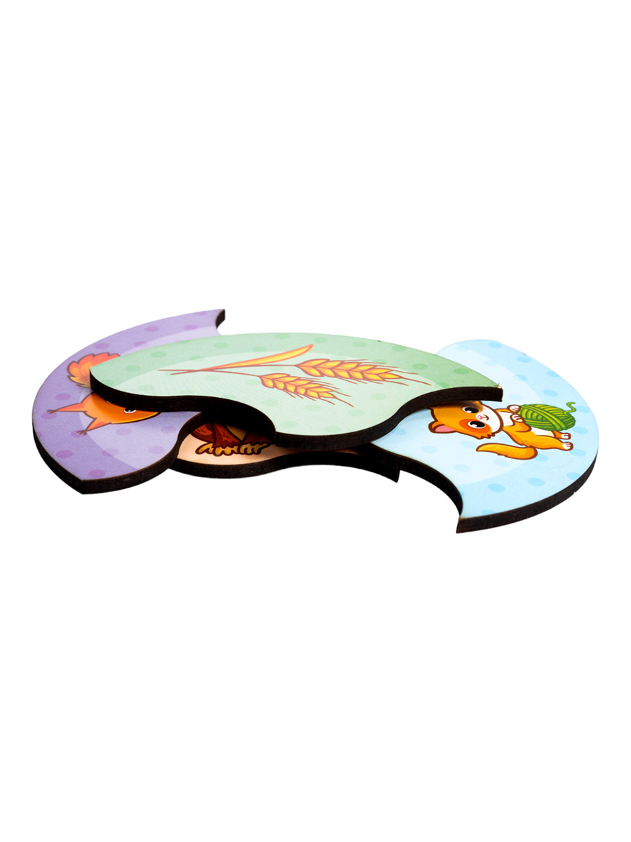 Пазлы изготовлены из древесного материала. Толщина всех элементов около 3 мм. Края закруглены и тщательно обработаны. Все материалы, использованные для изготовления данной игрушки, проверены и имеют сертификаты соответствия.