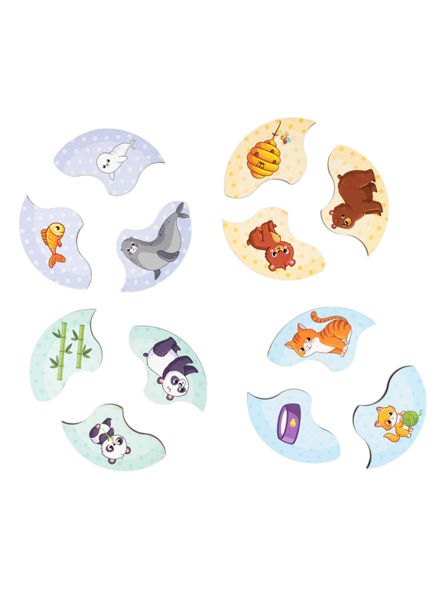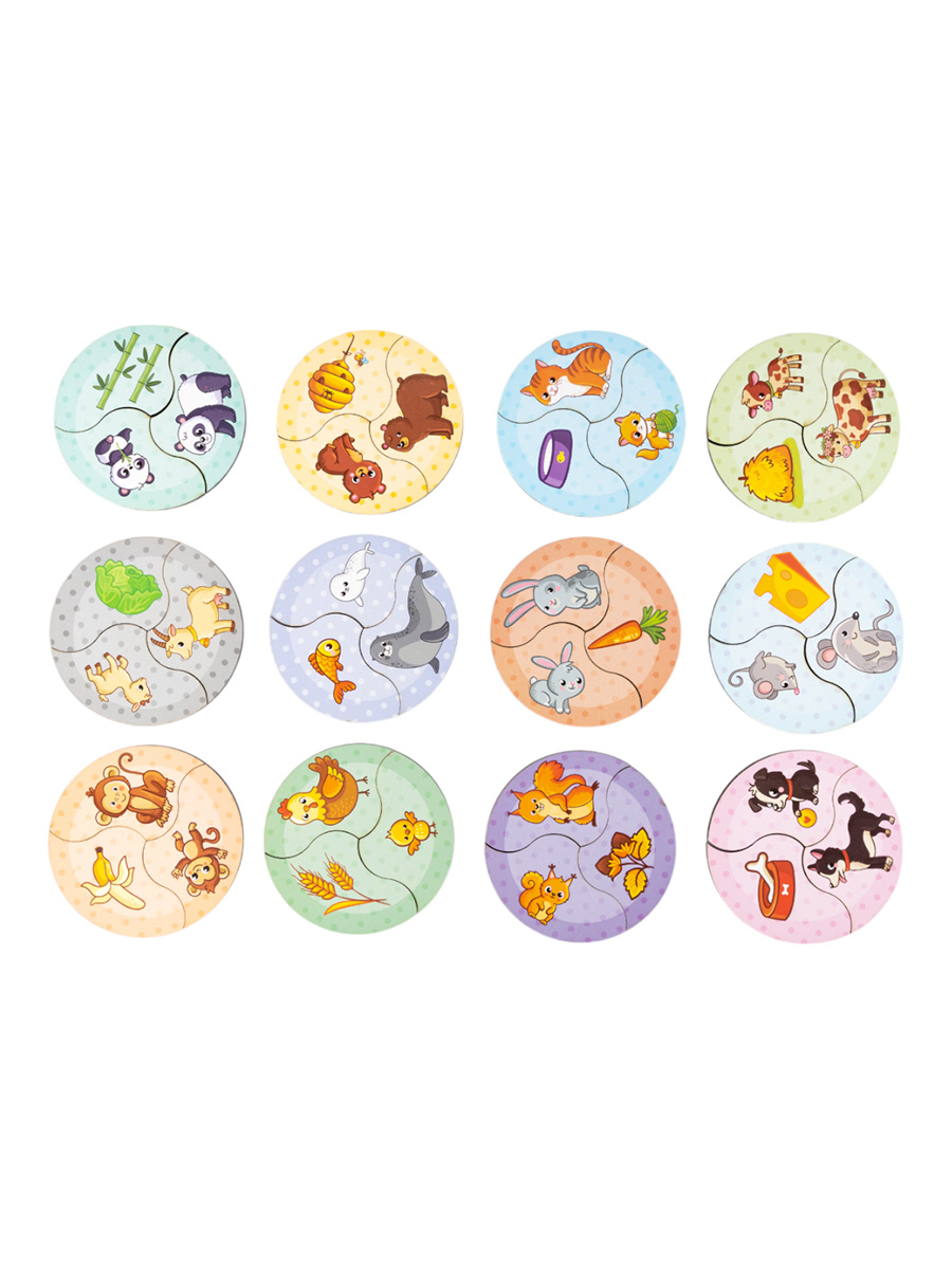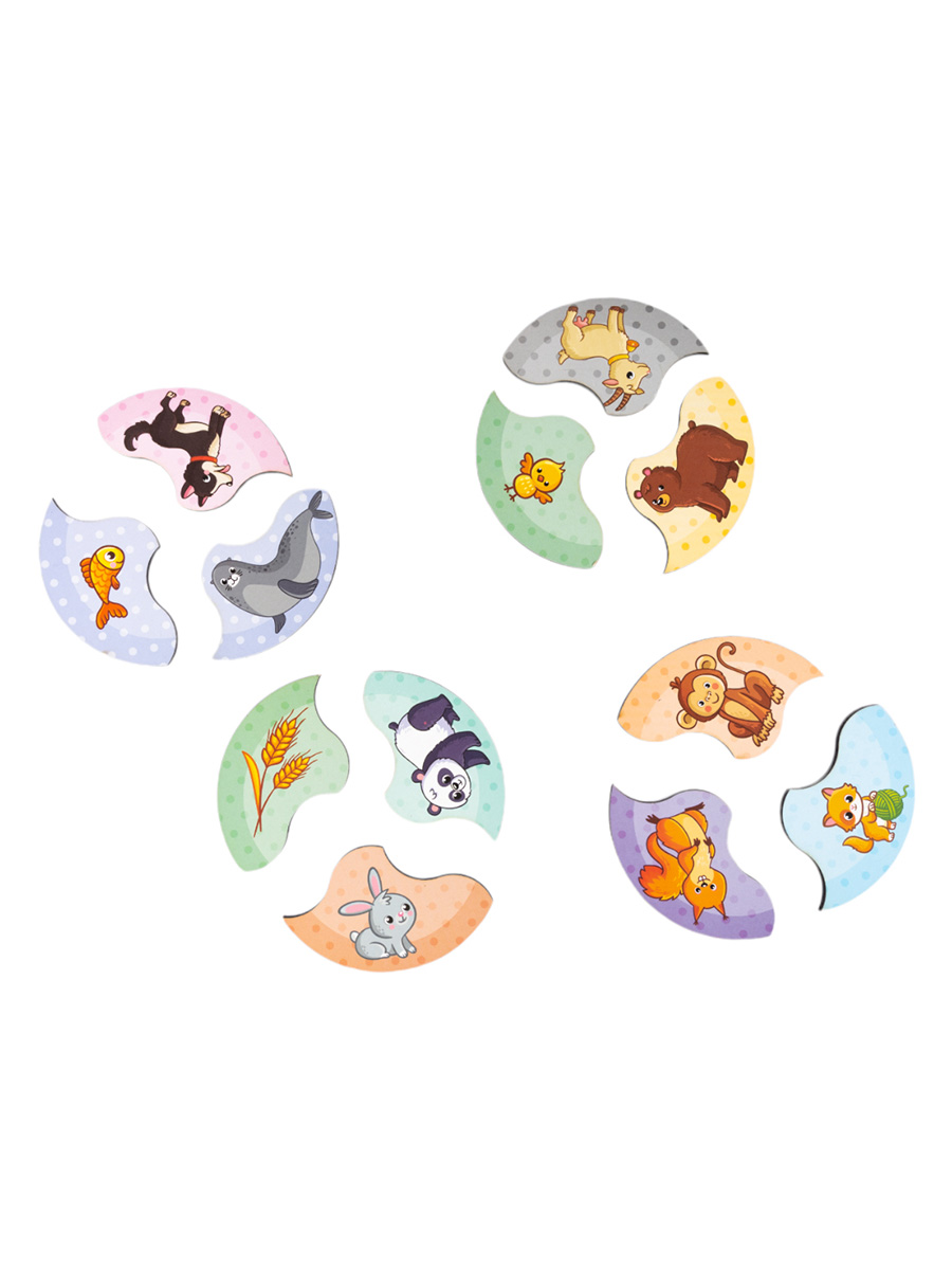 - 12 пазлов из древесного материала из 3 элементов каждый