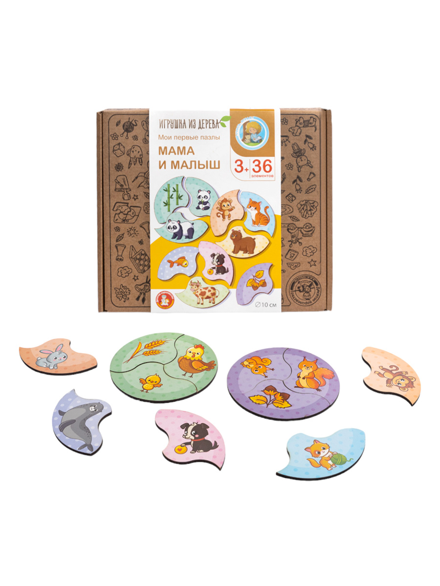 Деревянные пазлы для детей «Мои первые пазлы. Мама и малыш» 36 элементов