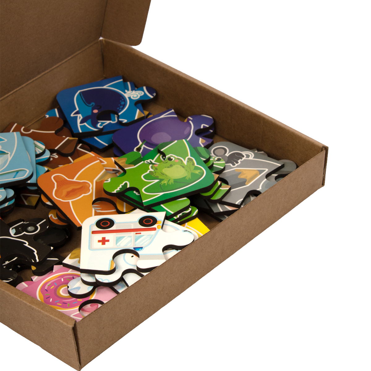 В процессе игры ребенок учит цвета и ищет соответствие между изображением и его основным цветом. Чтобы собрать пазл, нужно подобрать соответствующие ему цвета.