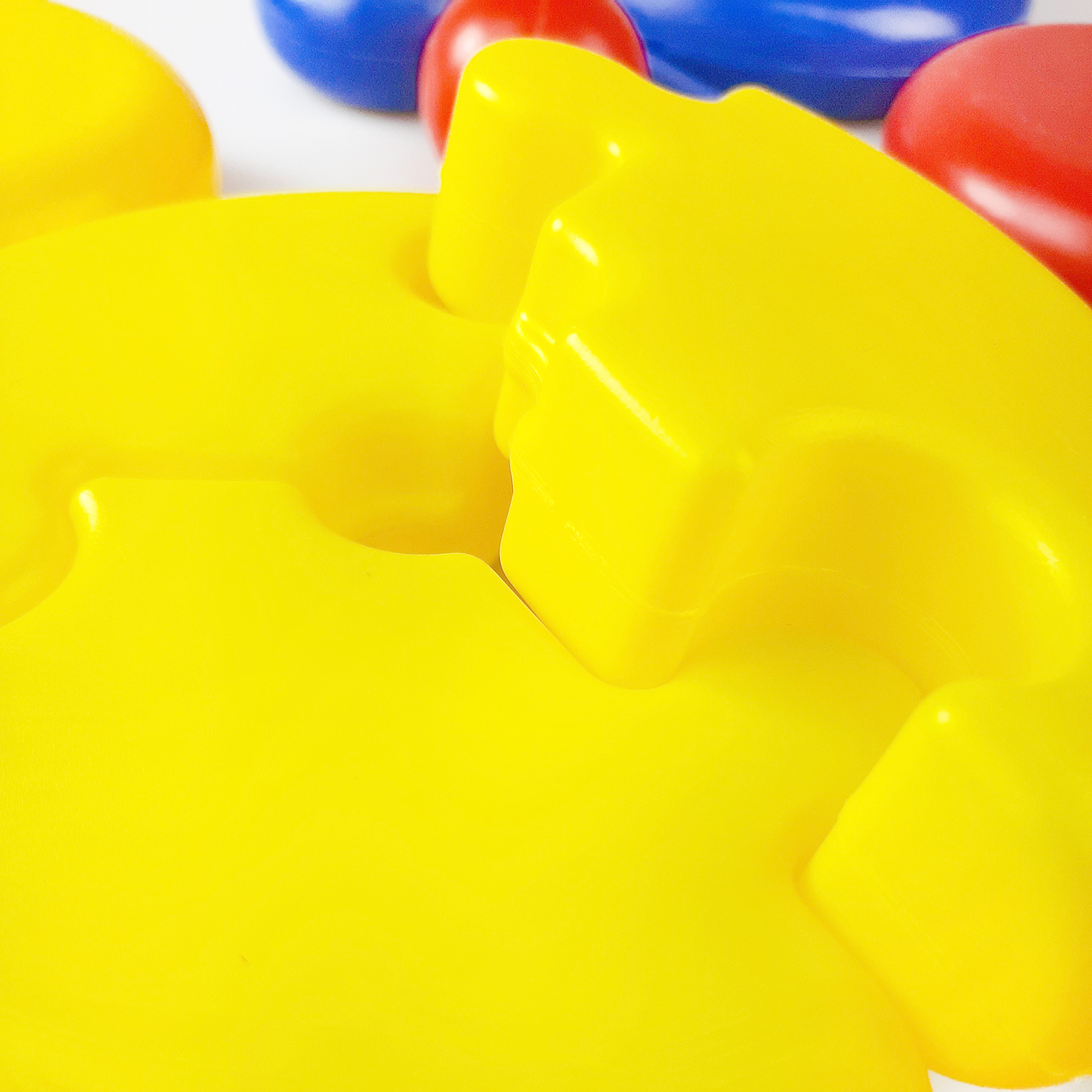Детали игрушки крупные и яркие для того, чтобы заинтересовать ребенка и удержать его внимание в процессе игры.