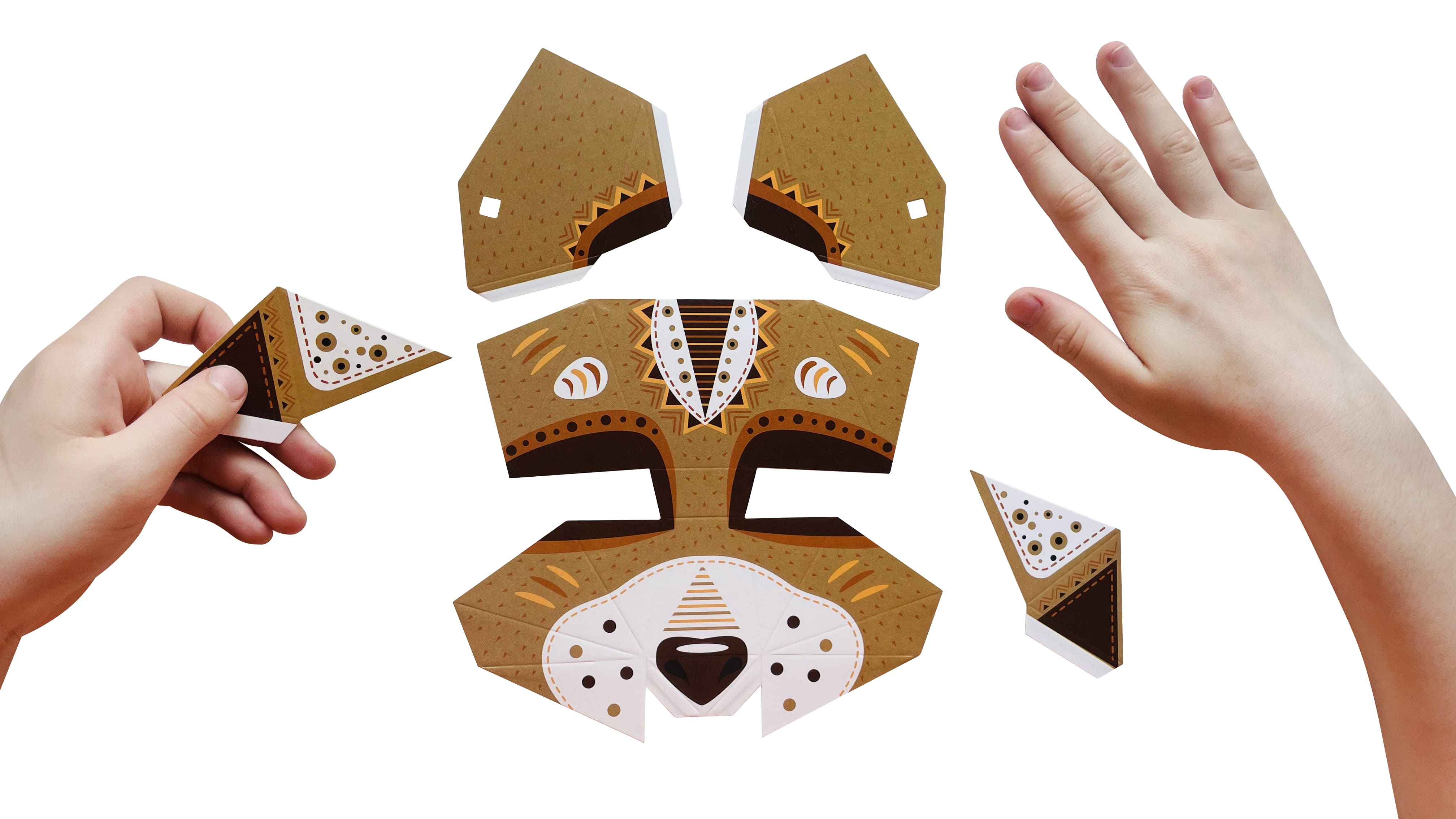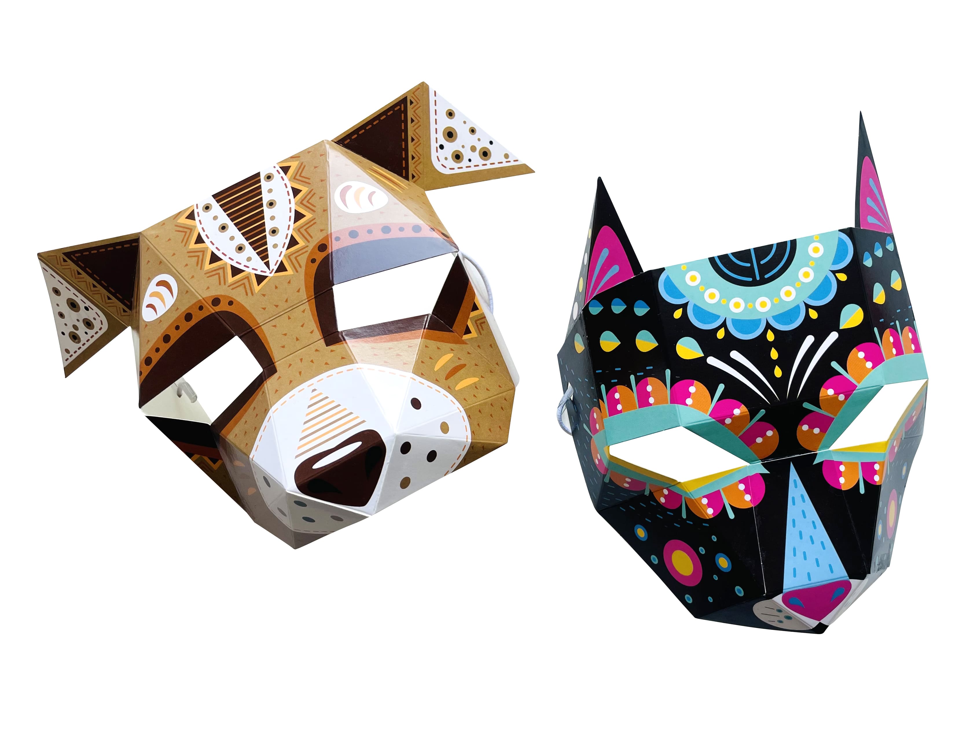 Полигональные маски своими руками «Щенок и Кошечка» (2 маски)