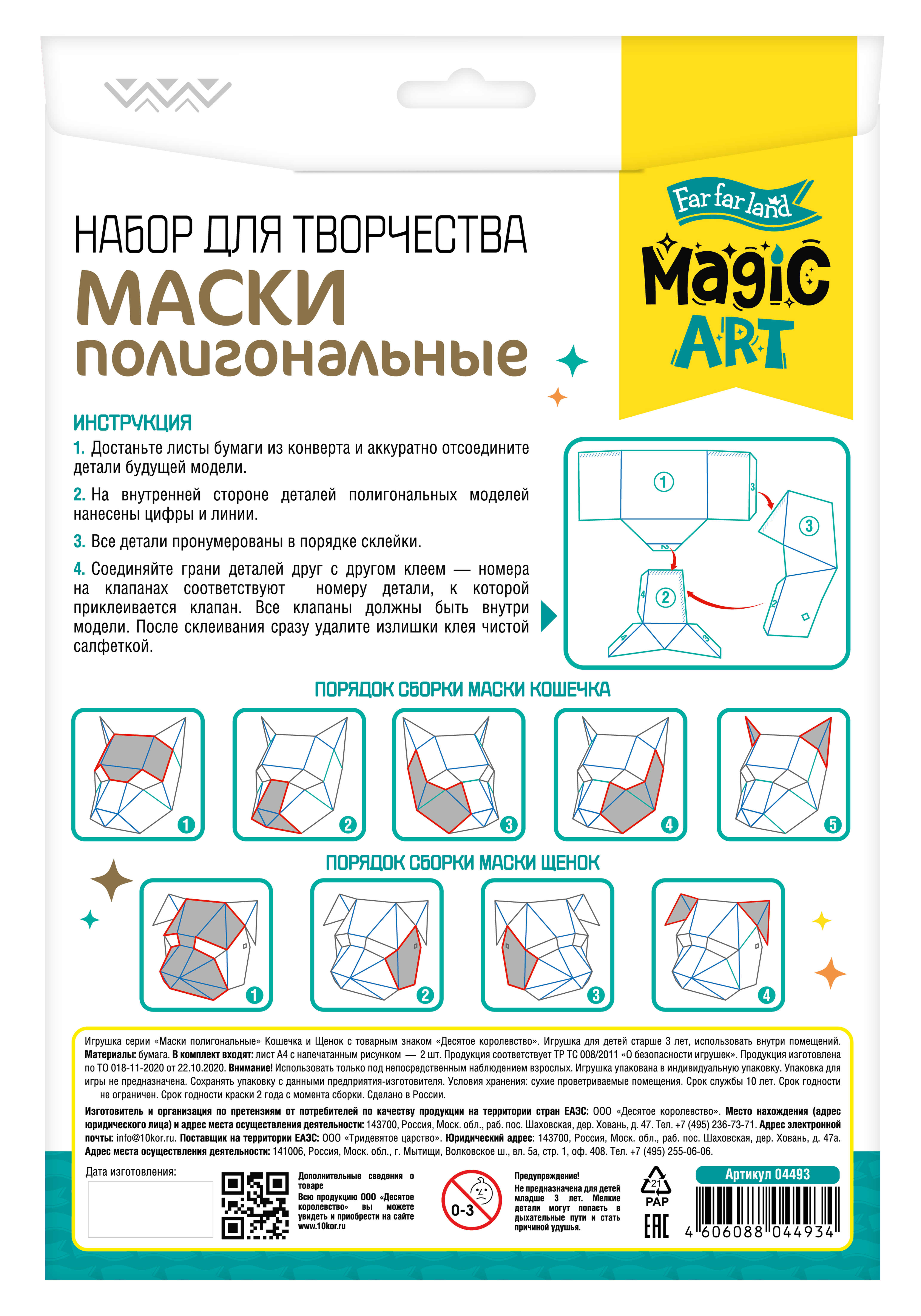 Набор для творчества. Полигональная маска. "Щенок и Кошечка" Вместе с этим товаром покупают: