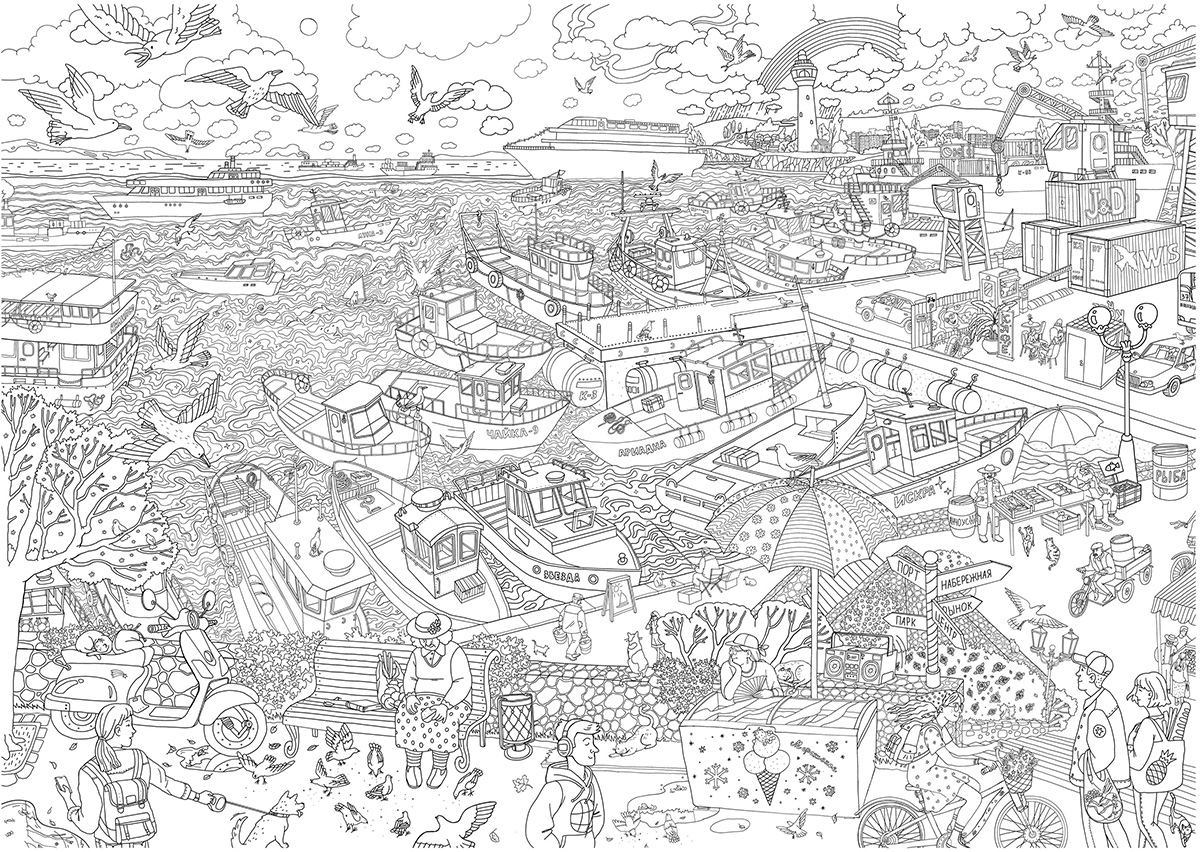 Плакат раскраска для детей «Морской порт» (формат А1)