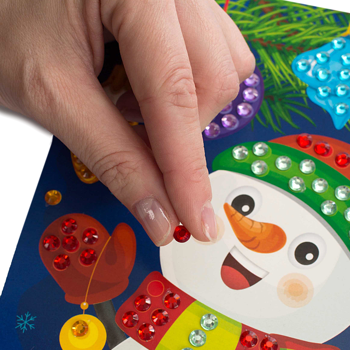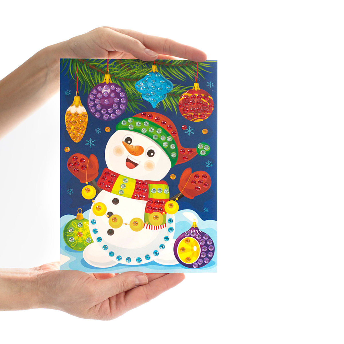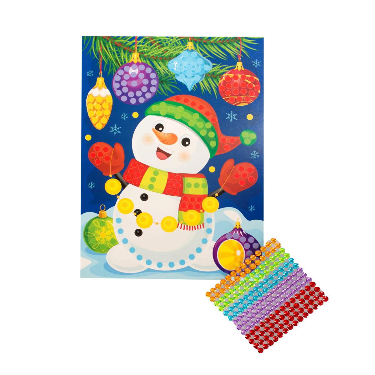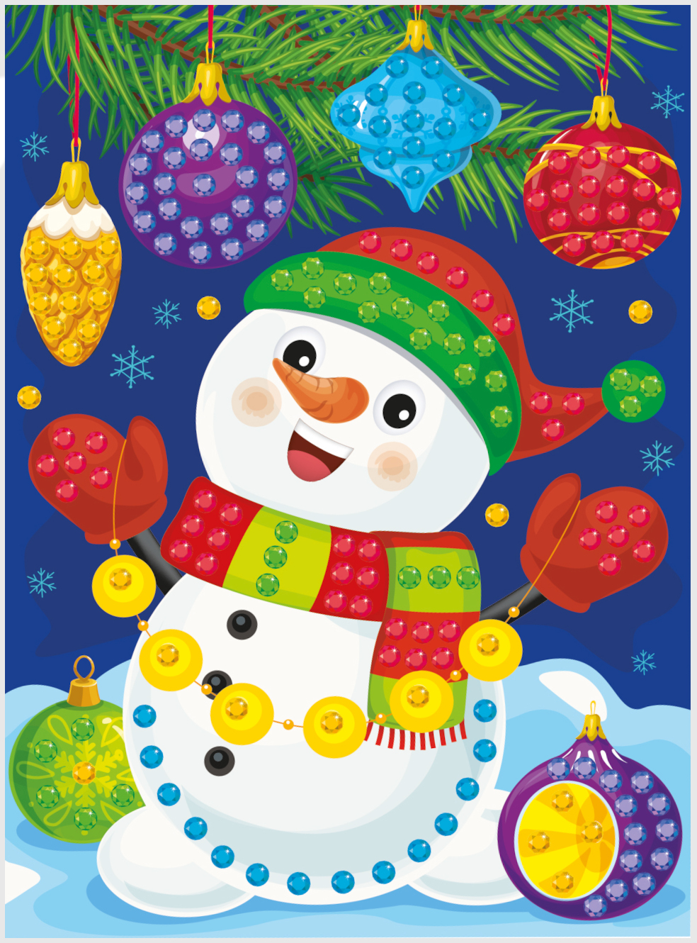 Рисунок из страз «Снеговик» (с елочными игрушками)