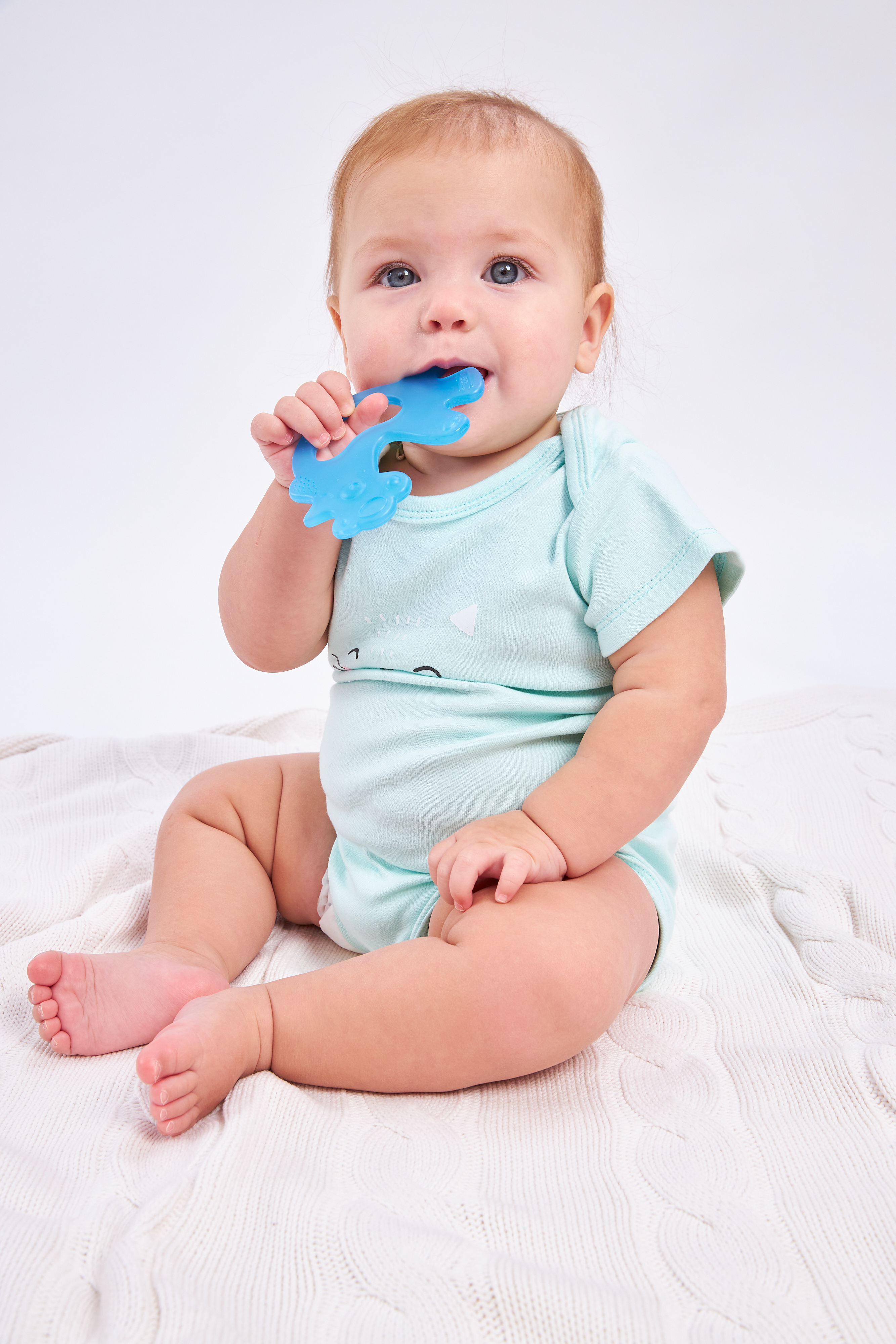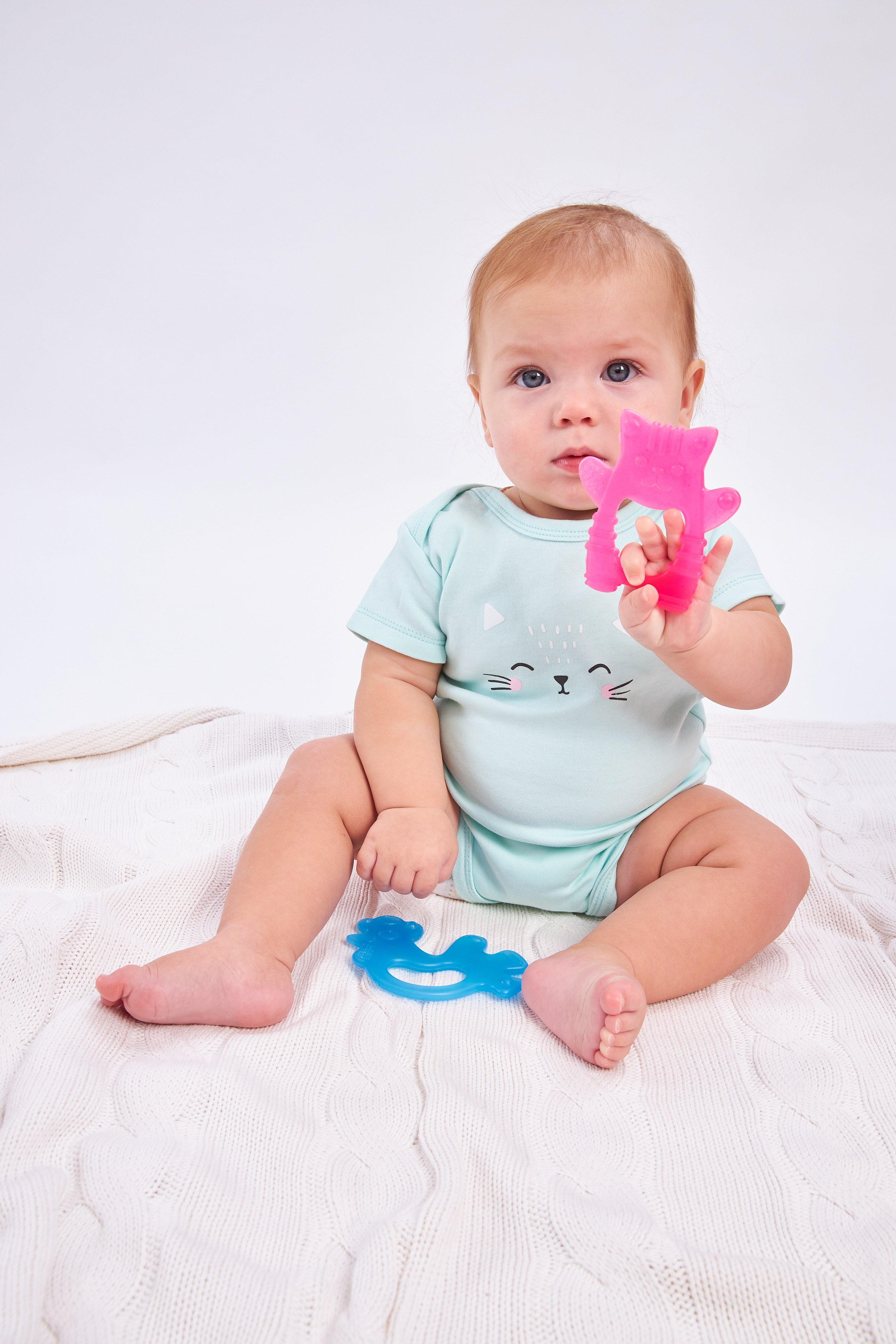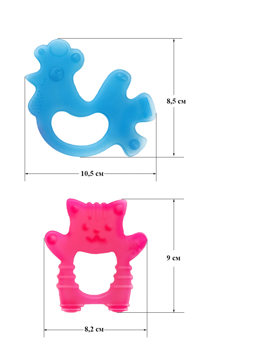 Прорезыватели помогают зубкам прорезаться безболезненно, а также формируют начальные навыки мелкой моторики у ребёнка. Материал прорезывателей бархатистый и приятный на ощупь. С ними можно играть в воде и в песке, а затем обработать его от загрязнений и снова дать малышу. Благодаря удобной форме, их удобно держать в ручках.