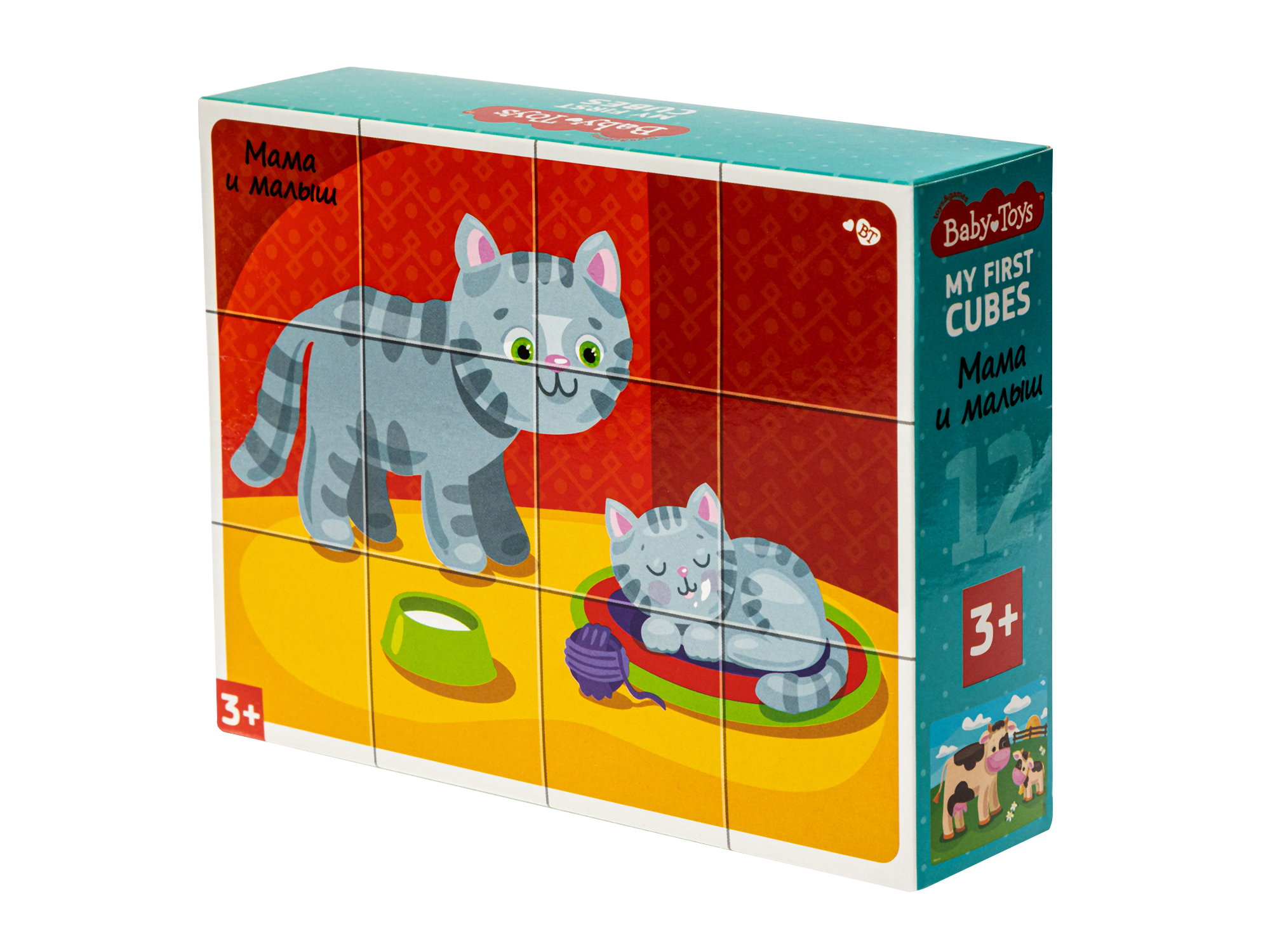 Развивающие кубики для детей «Мама и малыш» (12 штук)
