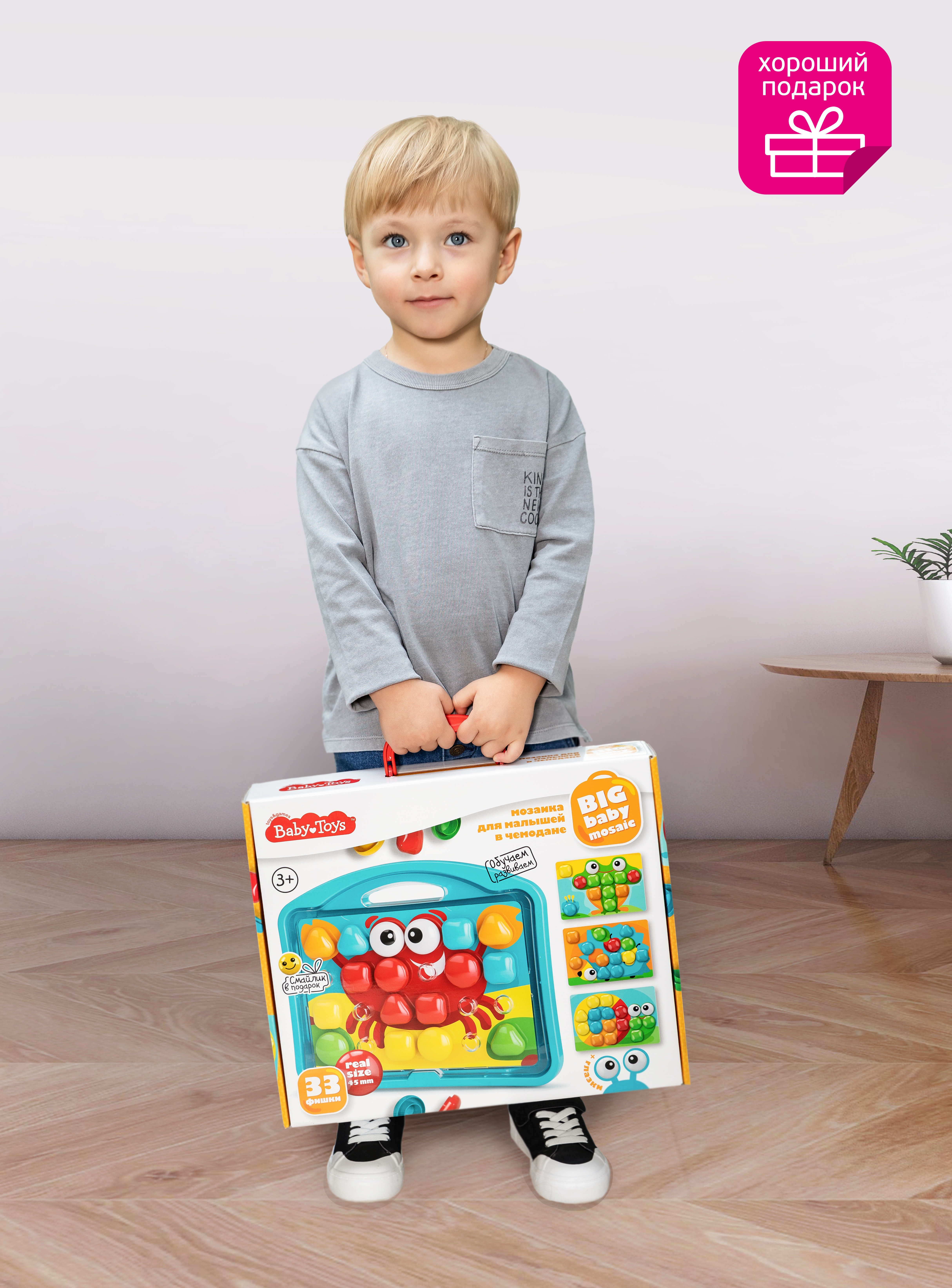 Мозаика для малышей в чемодане "Краб" d45/33 эл Baby Toys Вместе с этим товаром покупают: