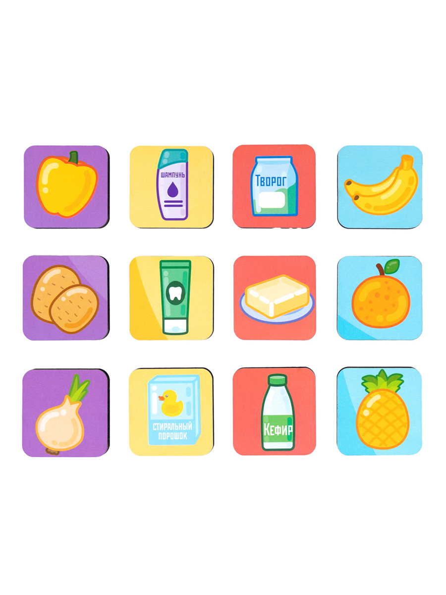 Настольная игра «Умный шопинг» – это не просто игра, это захватывающее приключение в мире покупок, которое сплотит всю семью! Забудьте о скучных вечерах, ведь теперь у вас есть возможность весело и с пользой провести время, развивая логику, память и внимание в процессе увлекательной игры. Ваша задача – стать самым ловким и внимательным покупателем, собирая товары в свою тележку в соответствии с заданием. А для того, чтобы игра была еще интереснее, в комплекте вы найдете четыре списка покупок, которые нужно аккуратно вырезать из инструкции.