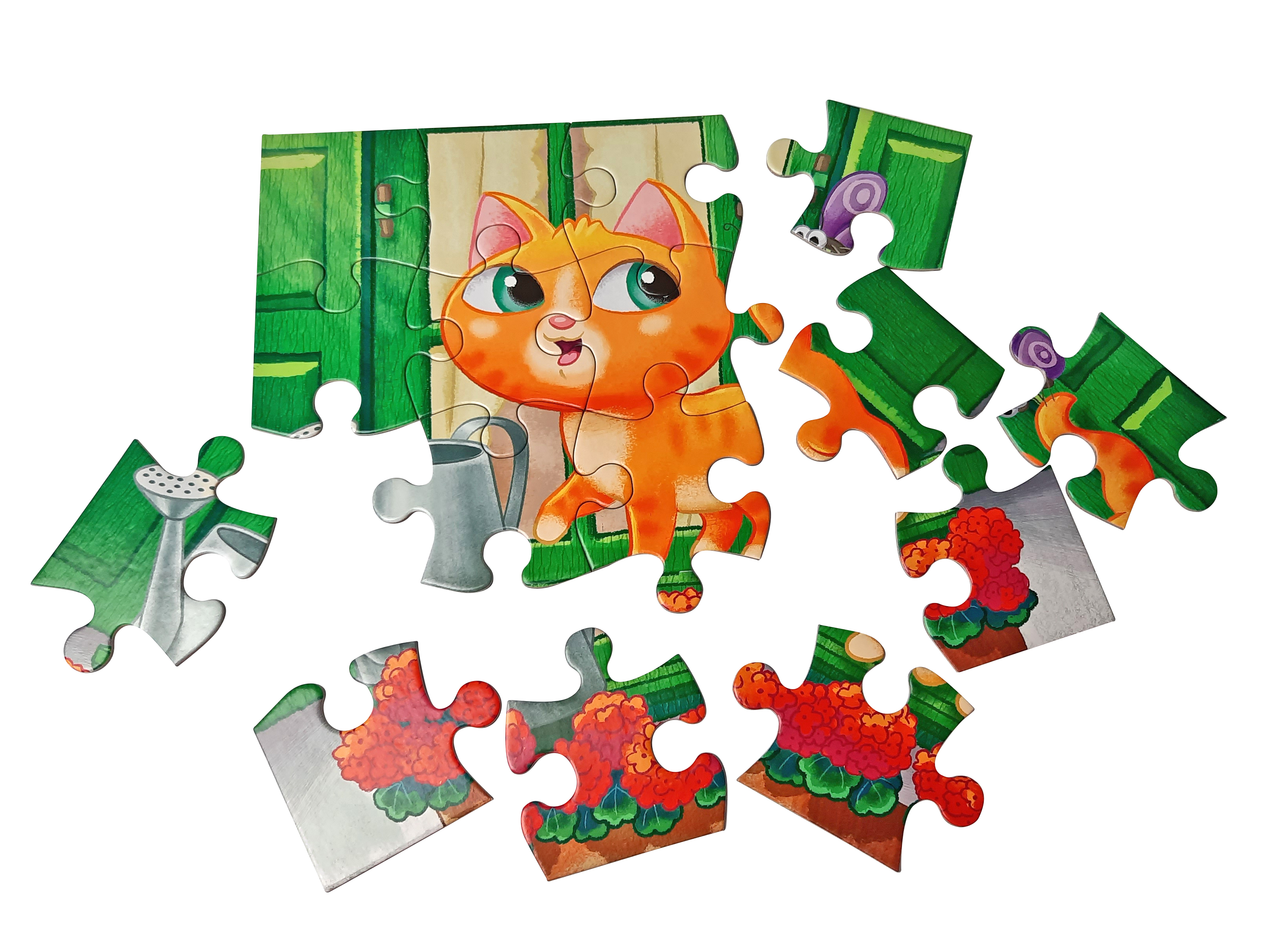 Соберите красочную картинку из пазла от Baby Toys. Милый котёнок так и ждёт, чтобы с ним поиграли!