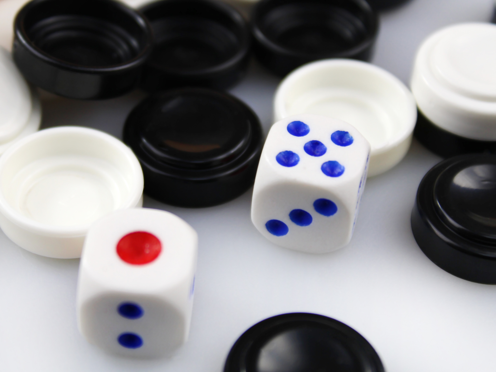Белым выпало 4 и 6. Они выбрасывают две шашки.