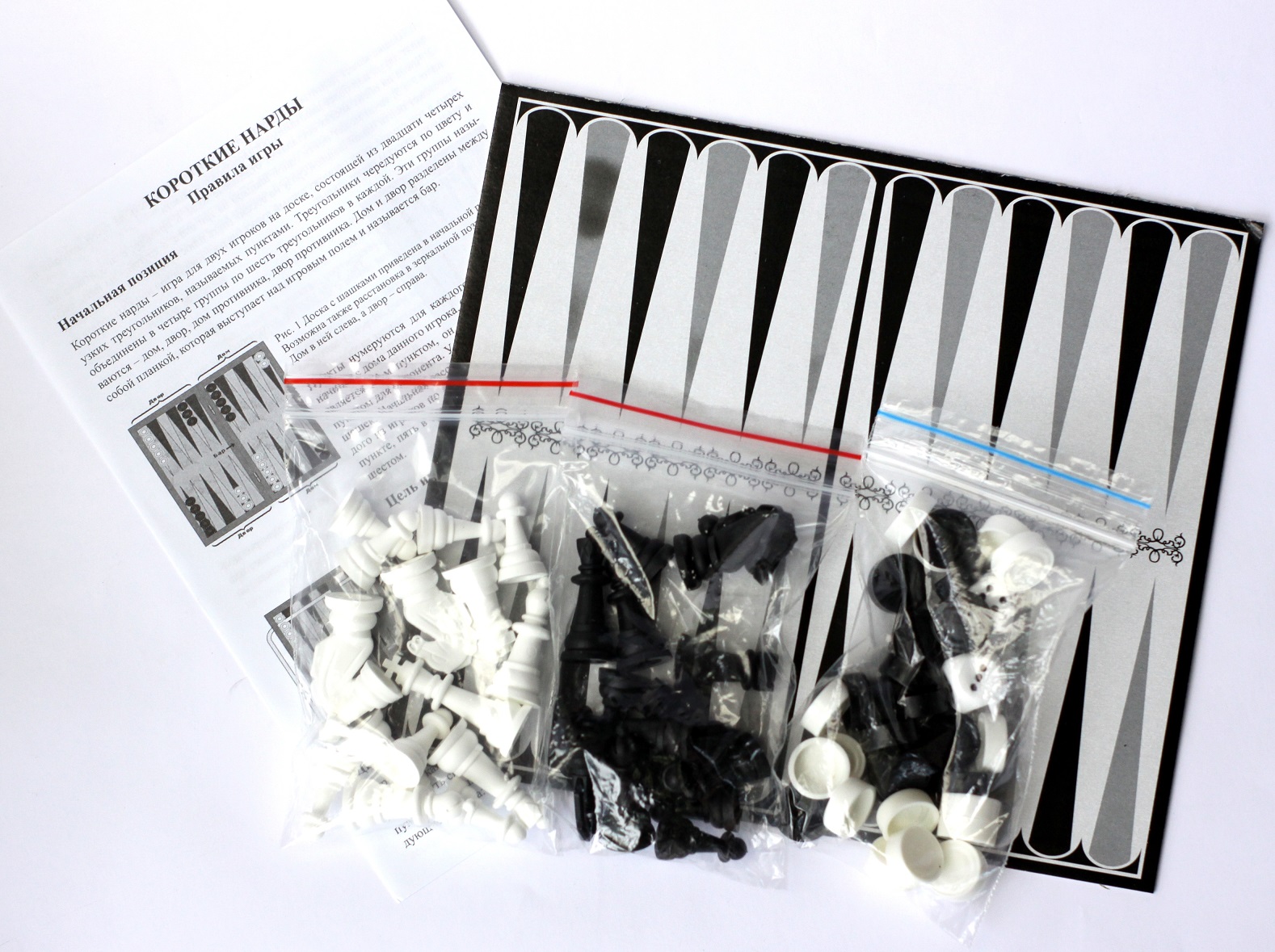 Игровое поле (доска) располагается таким образом, что бы угловое темное поле было расположено с левой стороны игрока.
