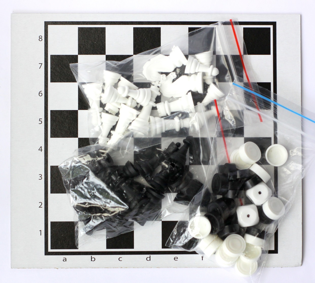 2. Шашки двух разных цветов по 12 штук.