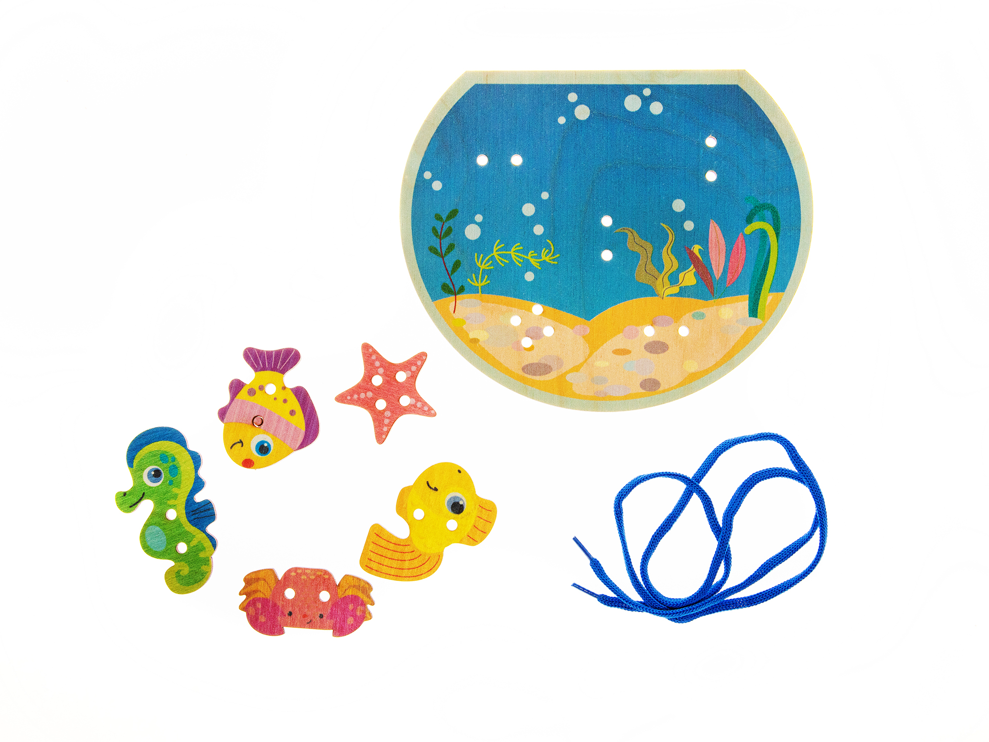 Деревянная шнуровка для детей «Аквариум»