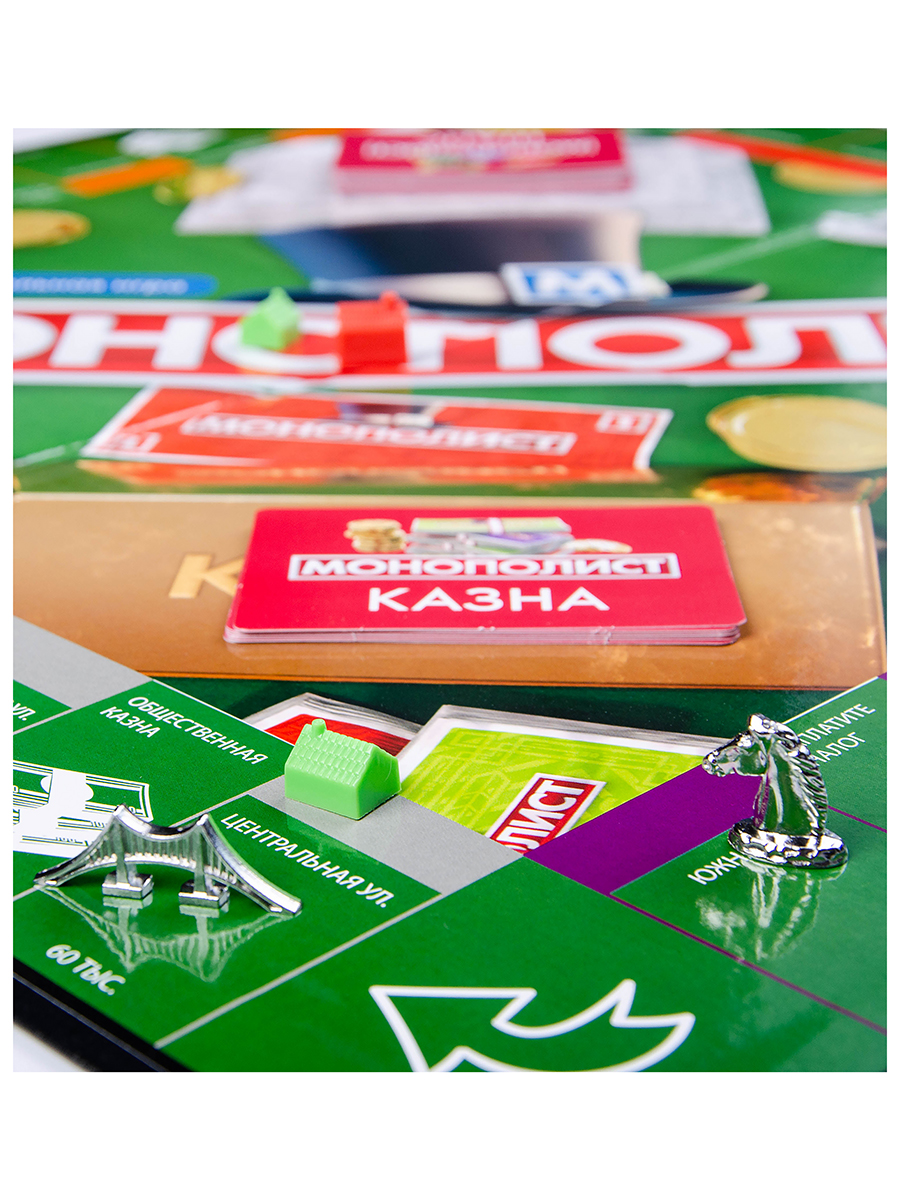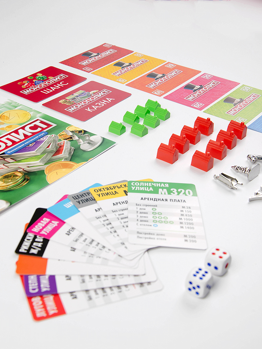 Начните путь вместе с конкурентами с ячейки «Вперед», определив очередь ходов броском кубика — у кого больше очков, тот ходит первым. Попав на свободный, еще никем не приобретенный участок, вы можете купить его. Если же вам не по карману такая покупка, участок будет разыгран банком на аукционе. Другой игрок, предложивший самую высокую цену, обязан выкупить этот участок. Вы можете взимать арендную плату с игроков, остановившихся на вашем участке. Дома и отели, построенные на участках одной группы, увеличивают стоимость арендной платы. При нехватке средств вы можете заложить один или несколько ваших участков.