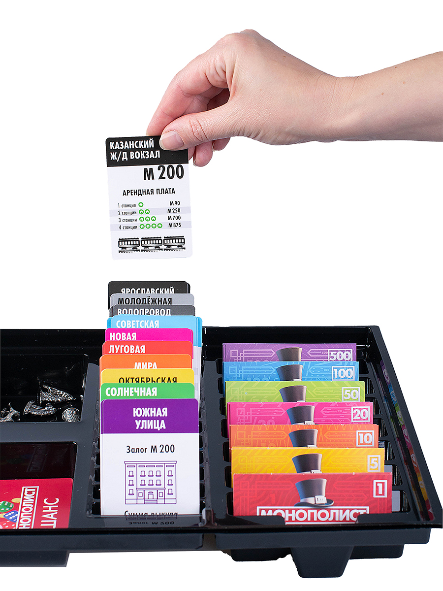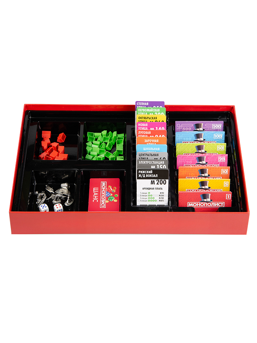 3. Распределите дома, отели, деньги по номиналу, а также карточки собственности на игровом поле.