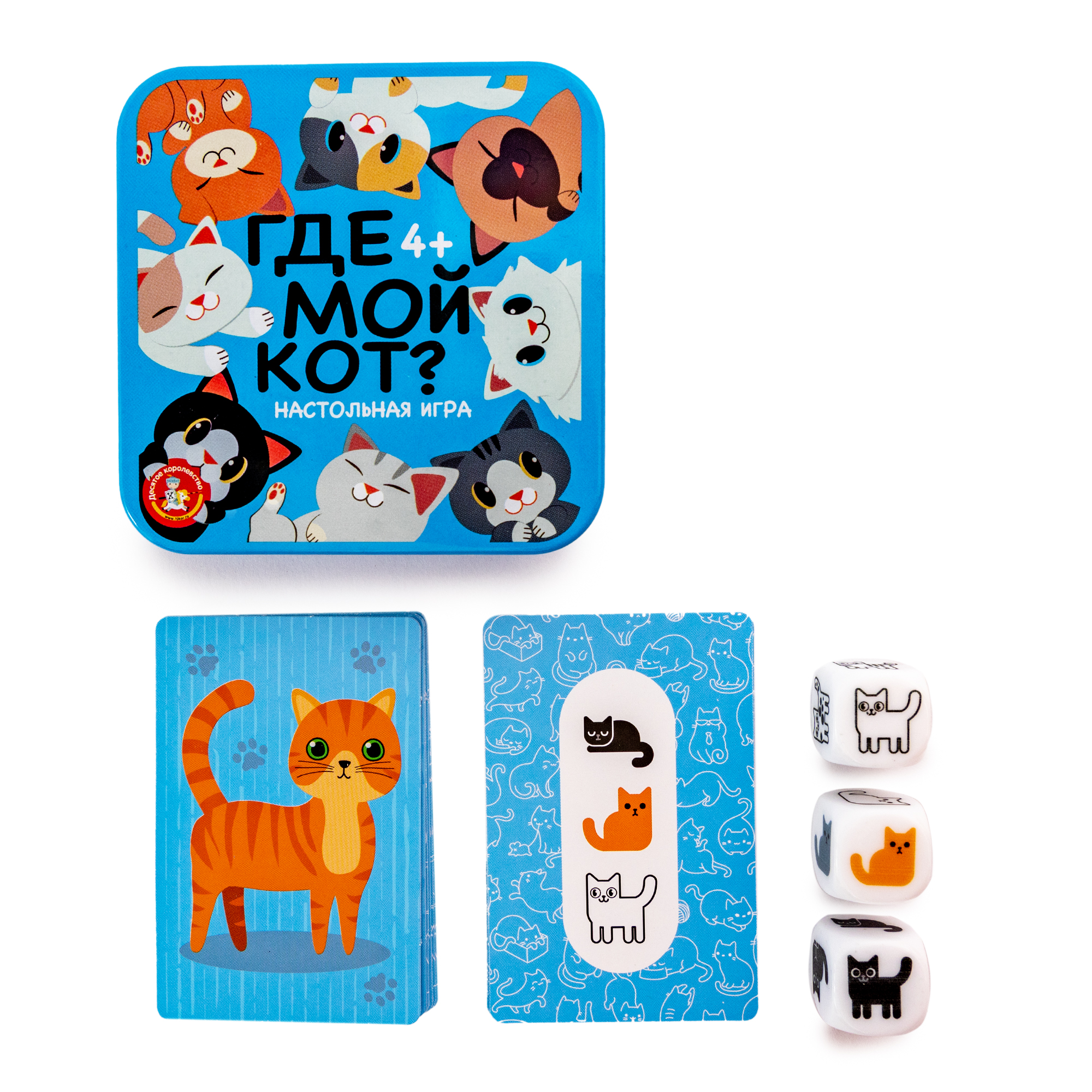Настольная игра «Пластиковые кубики. Где мой кот» в жестяной коробке