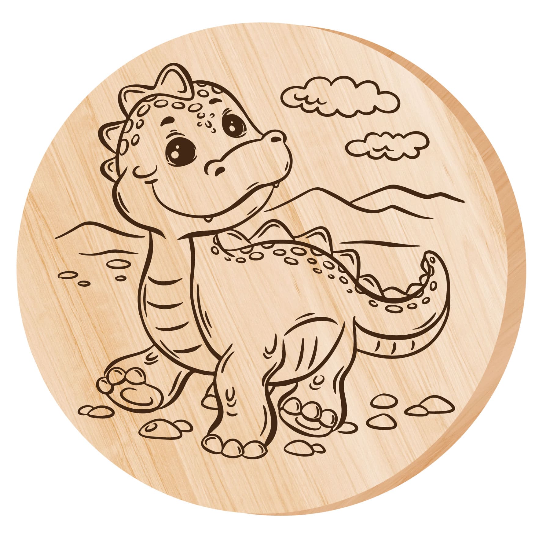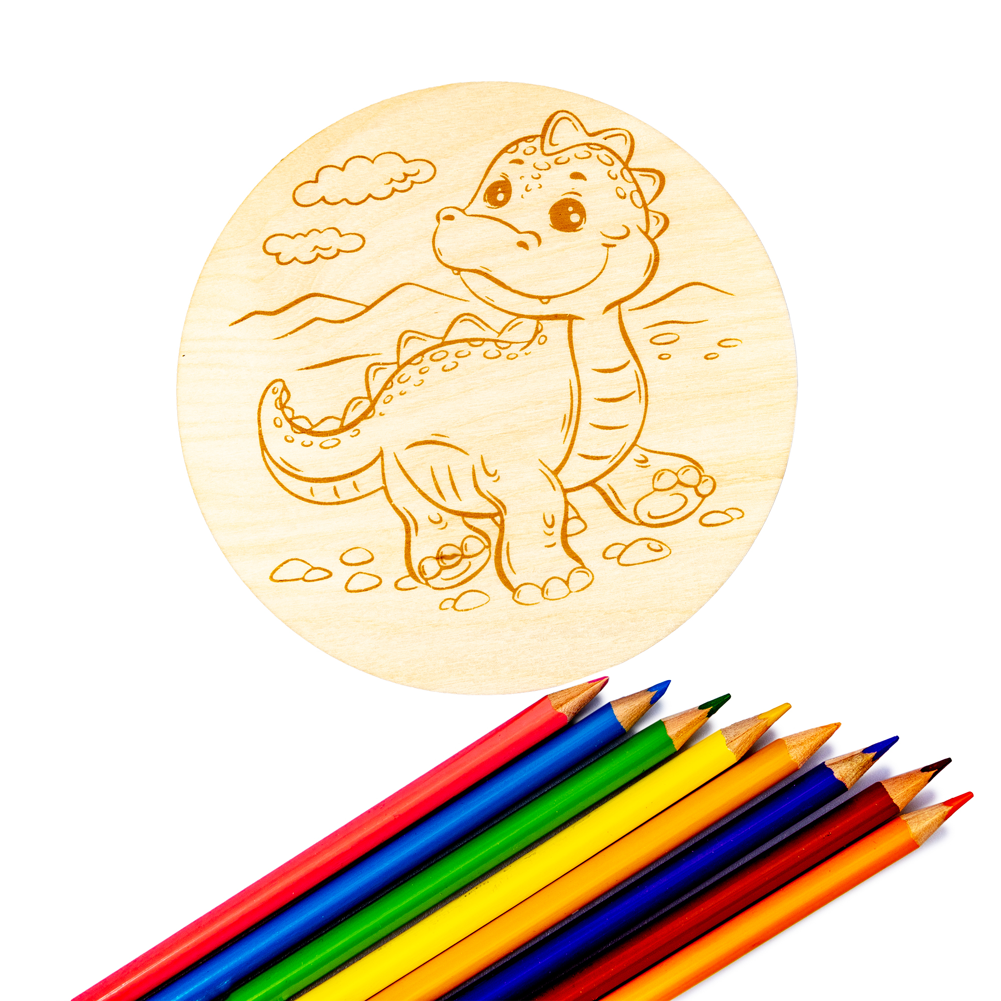 Дощечка с рисунком для выжигания «Динозаврик» (круг, конверт А4)
