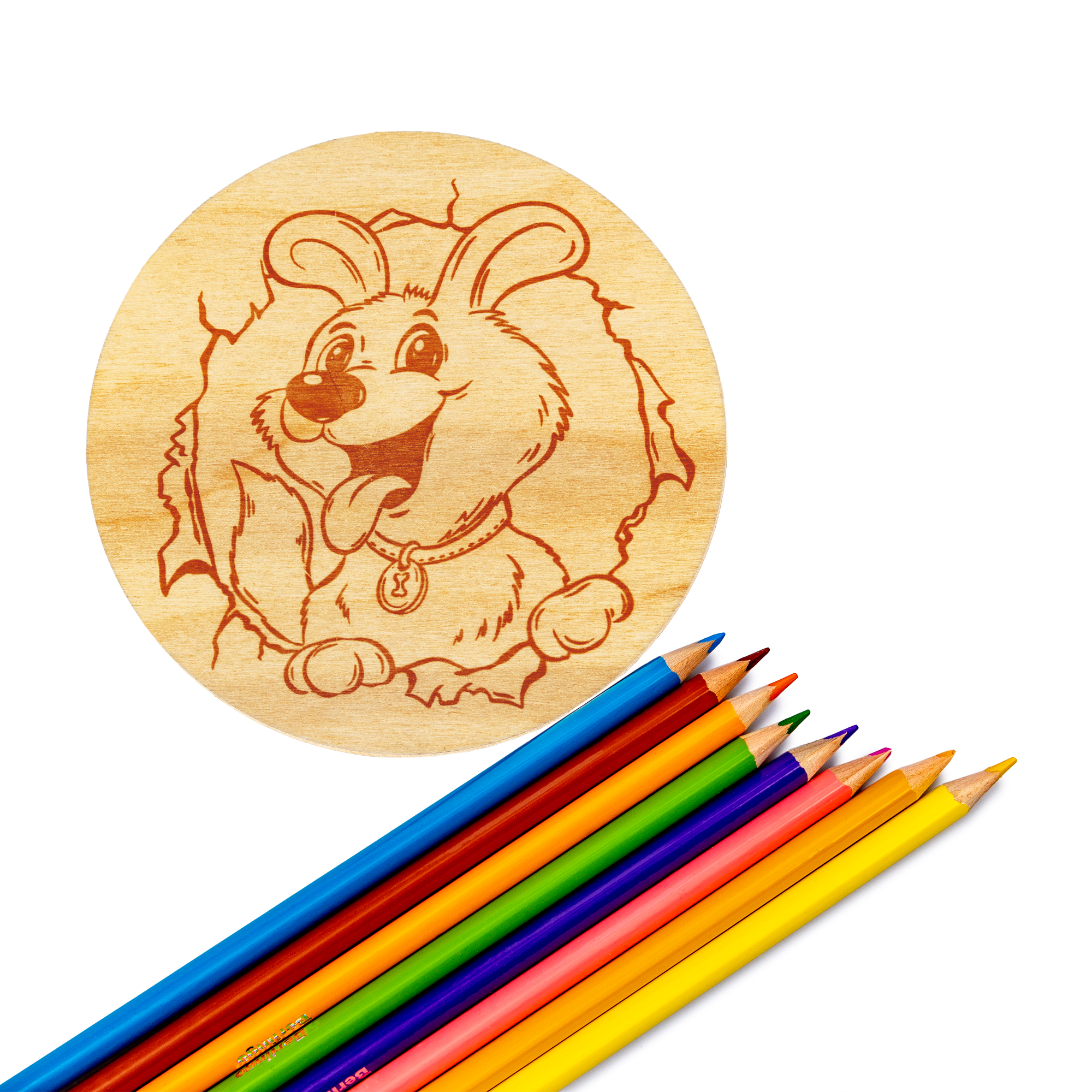 Дощечка с рисунком для выжигания «Щенок» (круг, конверт А4)
