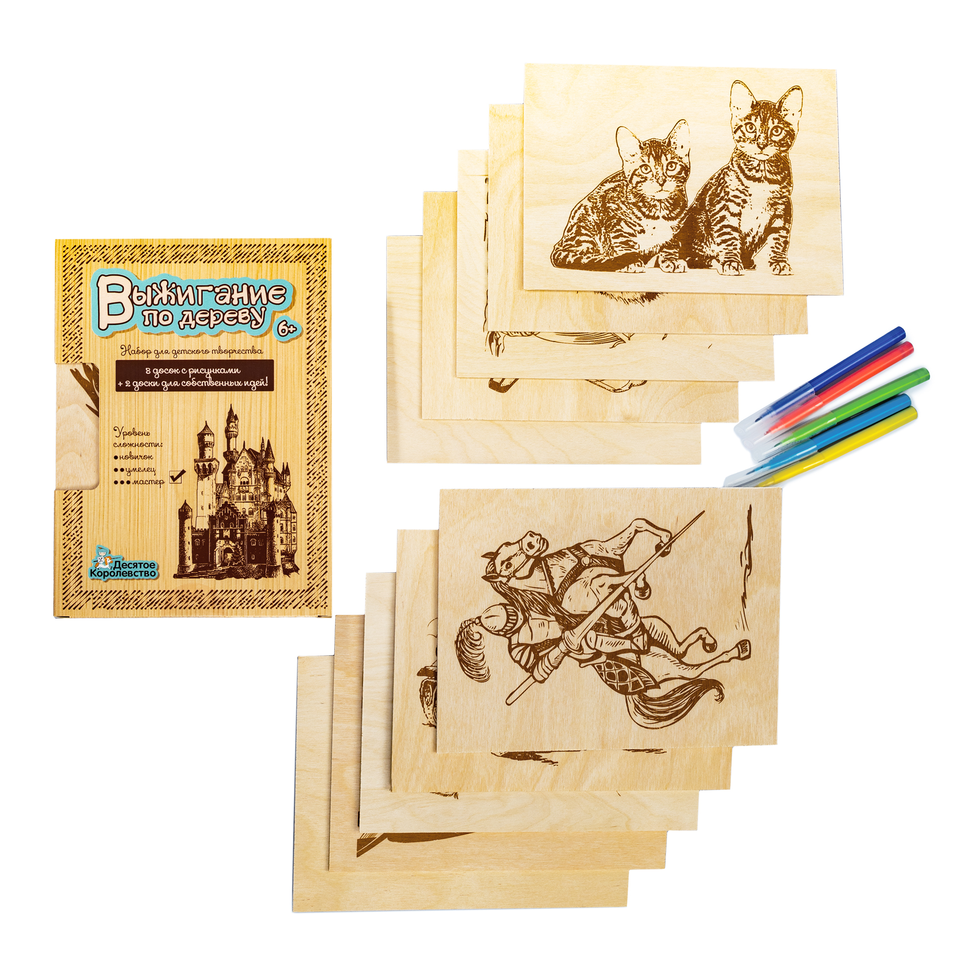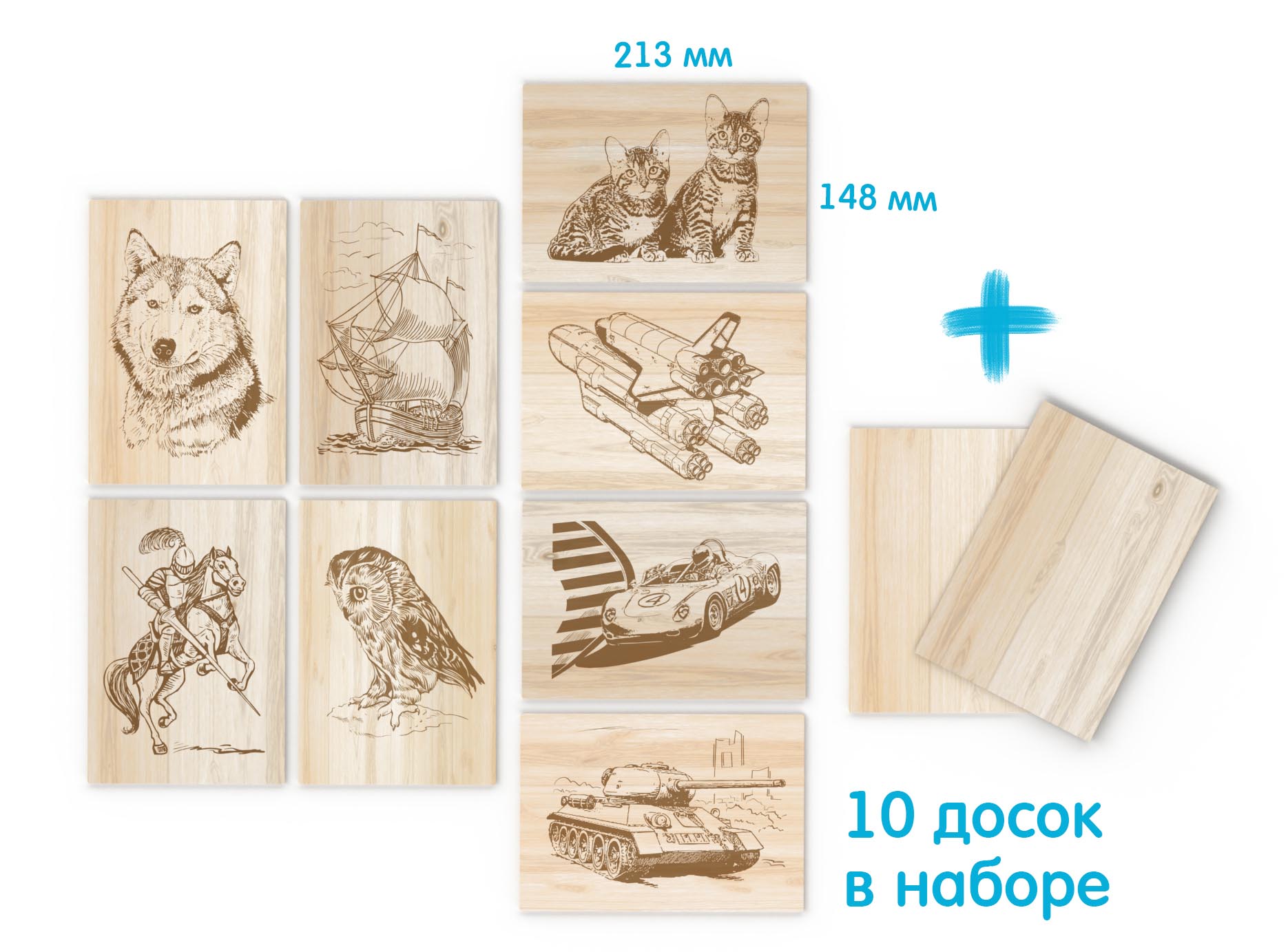 Доски с рисунком для выжигания 10 штук. Сложность рисунков «Мастер»