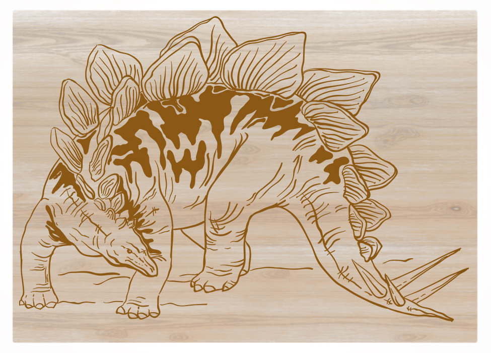 На 4 фанерках для выжигания нанесены рисунки динозавров, а пятую мы оставили пустой, на которой можно реализовать свои собственные идеи. Для этого мы рекомендуем обратиться к нашей библиотеке бесплатных рисунков.