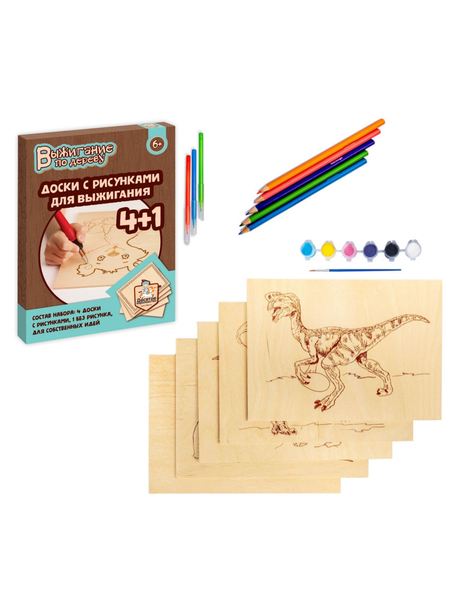 Набор досок для выжигания «Тираннозавр,Трицератопс, Стегозавр, Овираптор» из серии «Динозавры», как многие другие можете купить непосредственно в интернет-магазине производителя по низкой цене и доставкой по всей России.