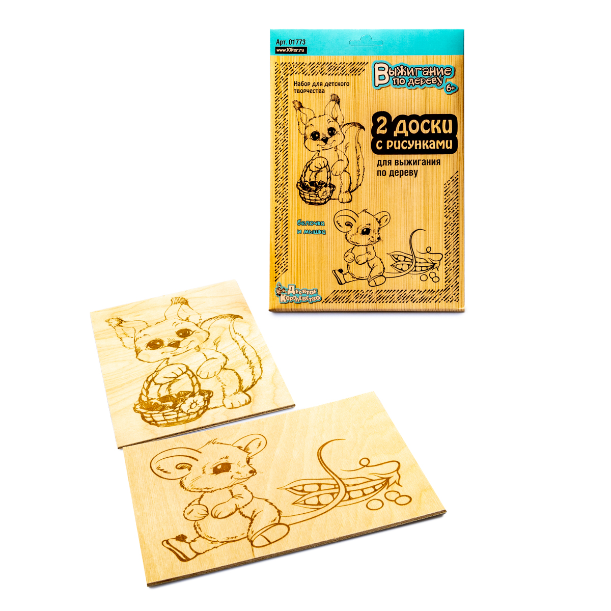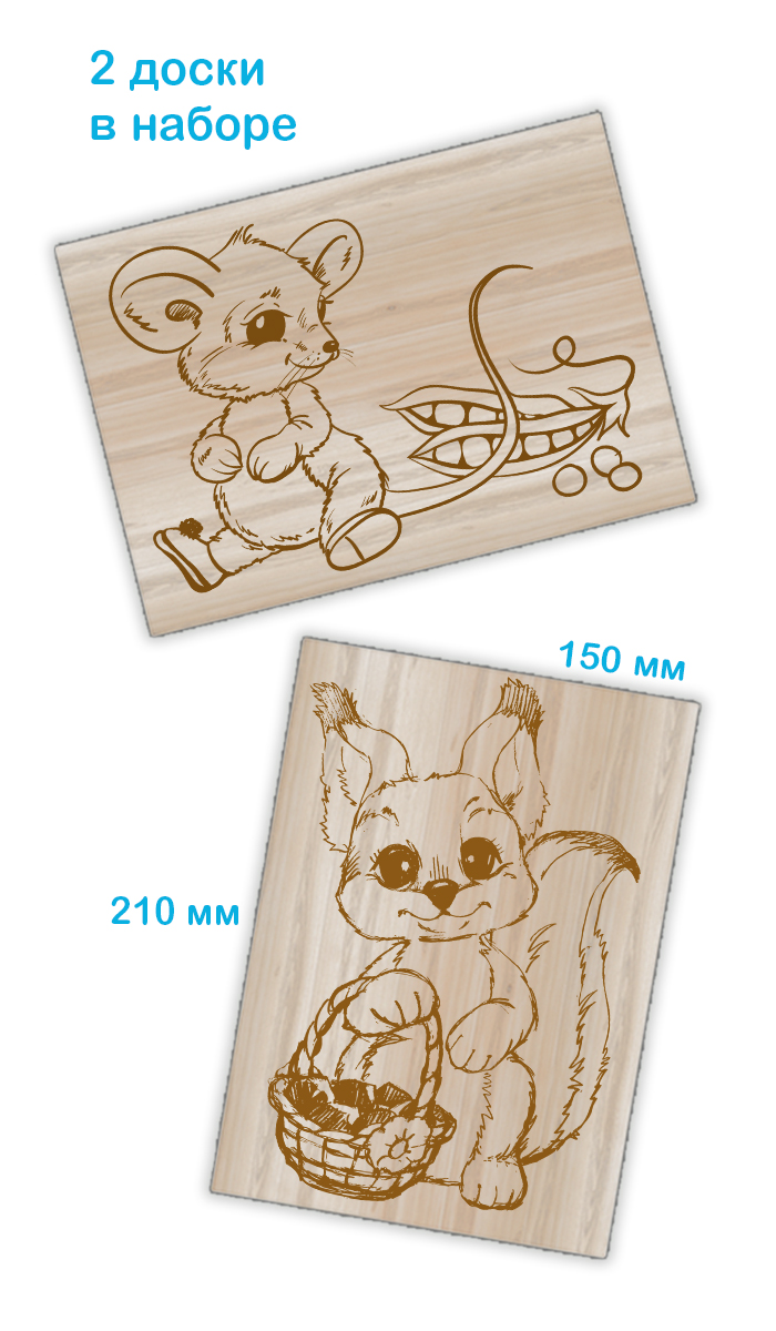 Набор досок с рисунком для выжигания «Белочка и мышка» (2 штуки)