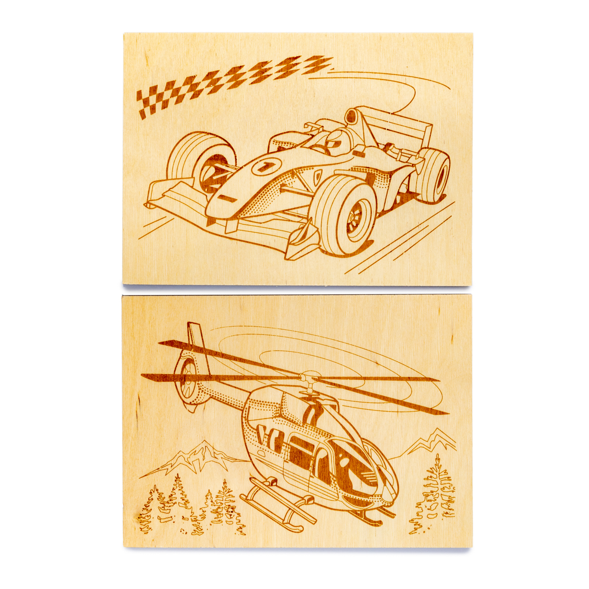 Доски для выжигания «Вертолет и Гоночный автомобиль» (2 штуки)