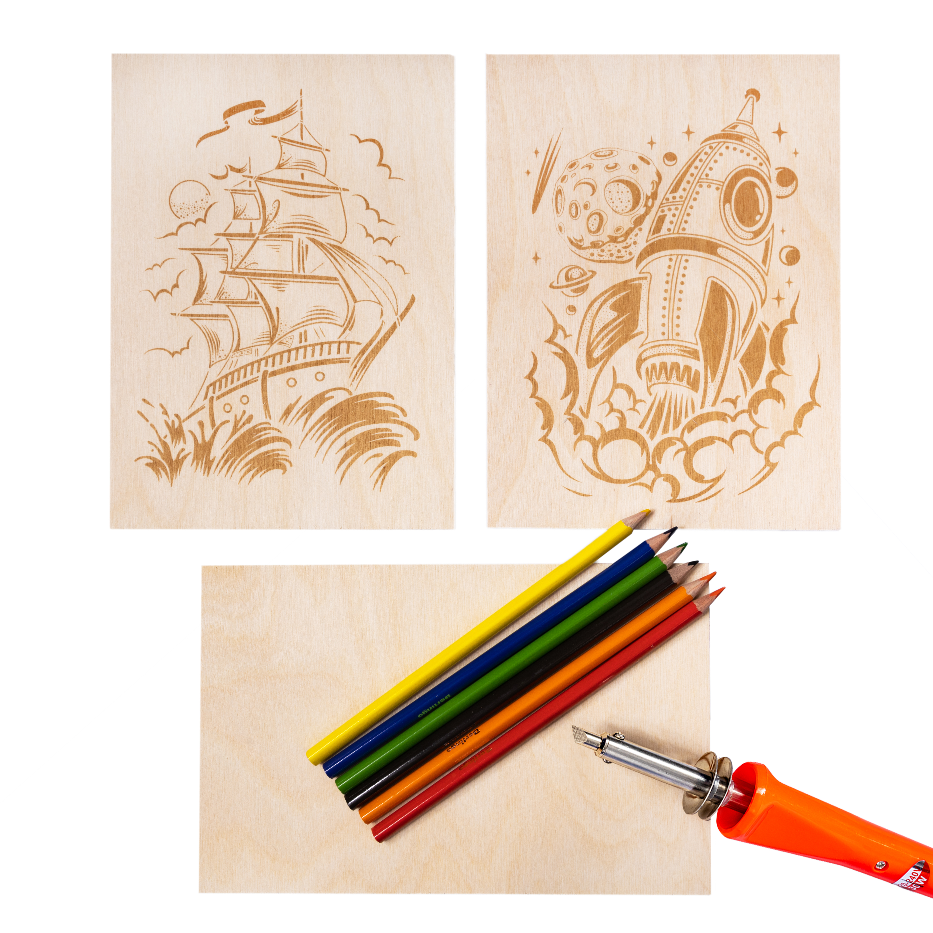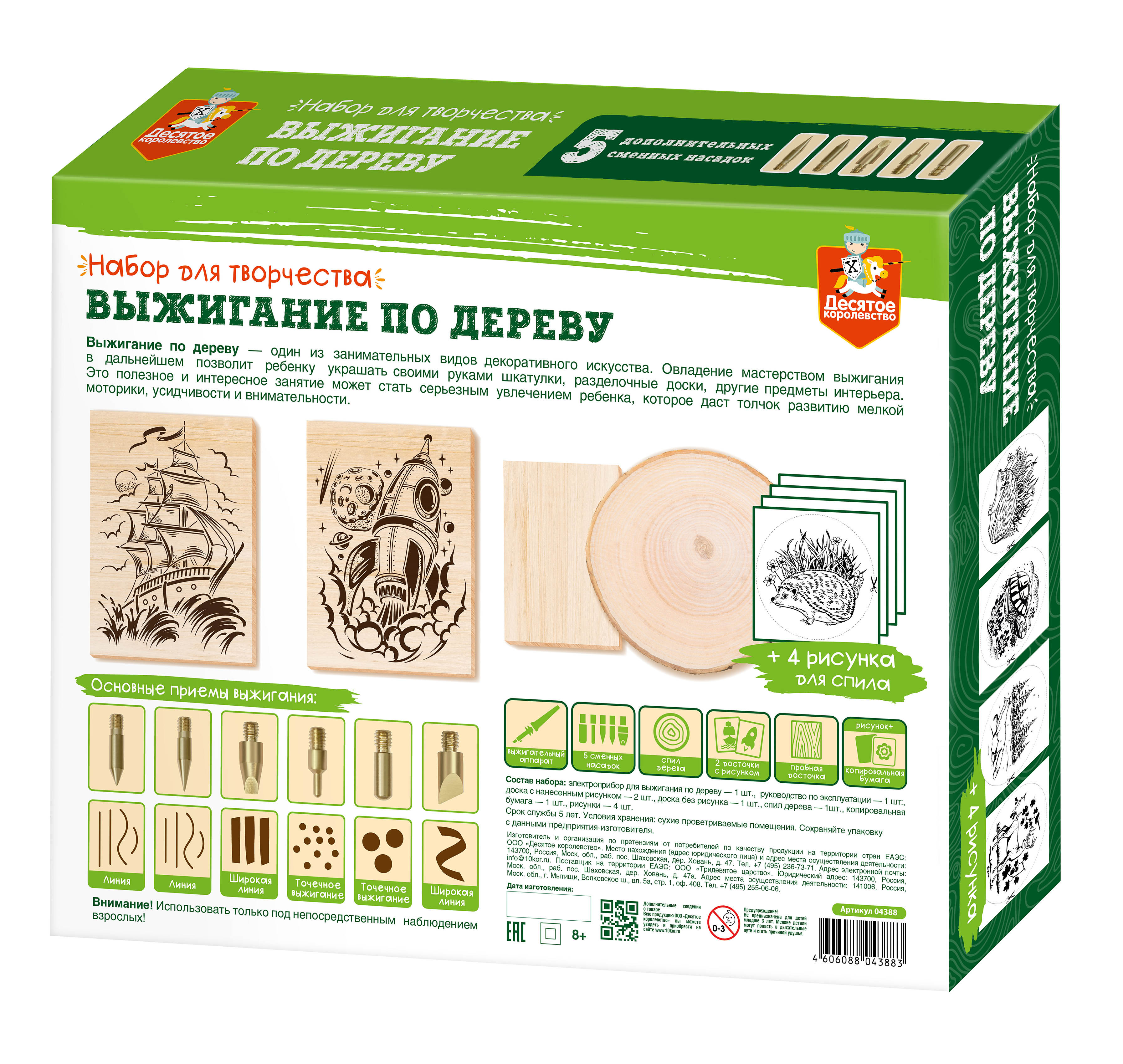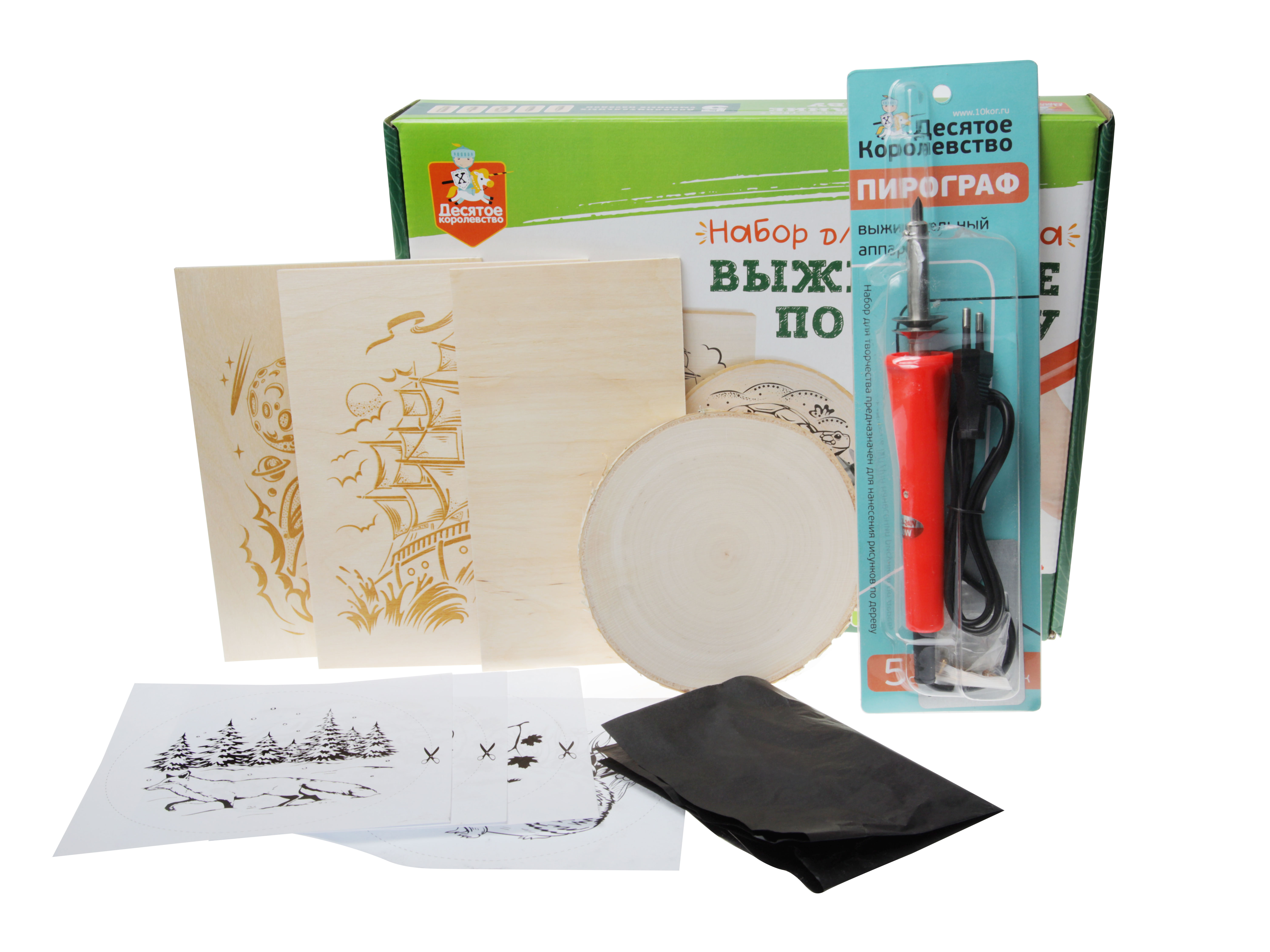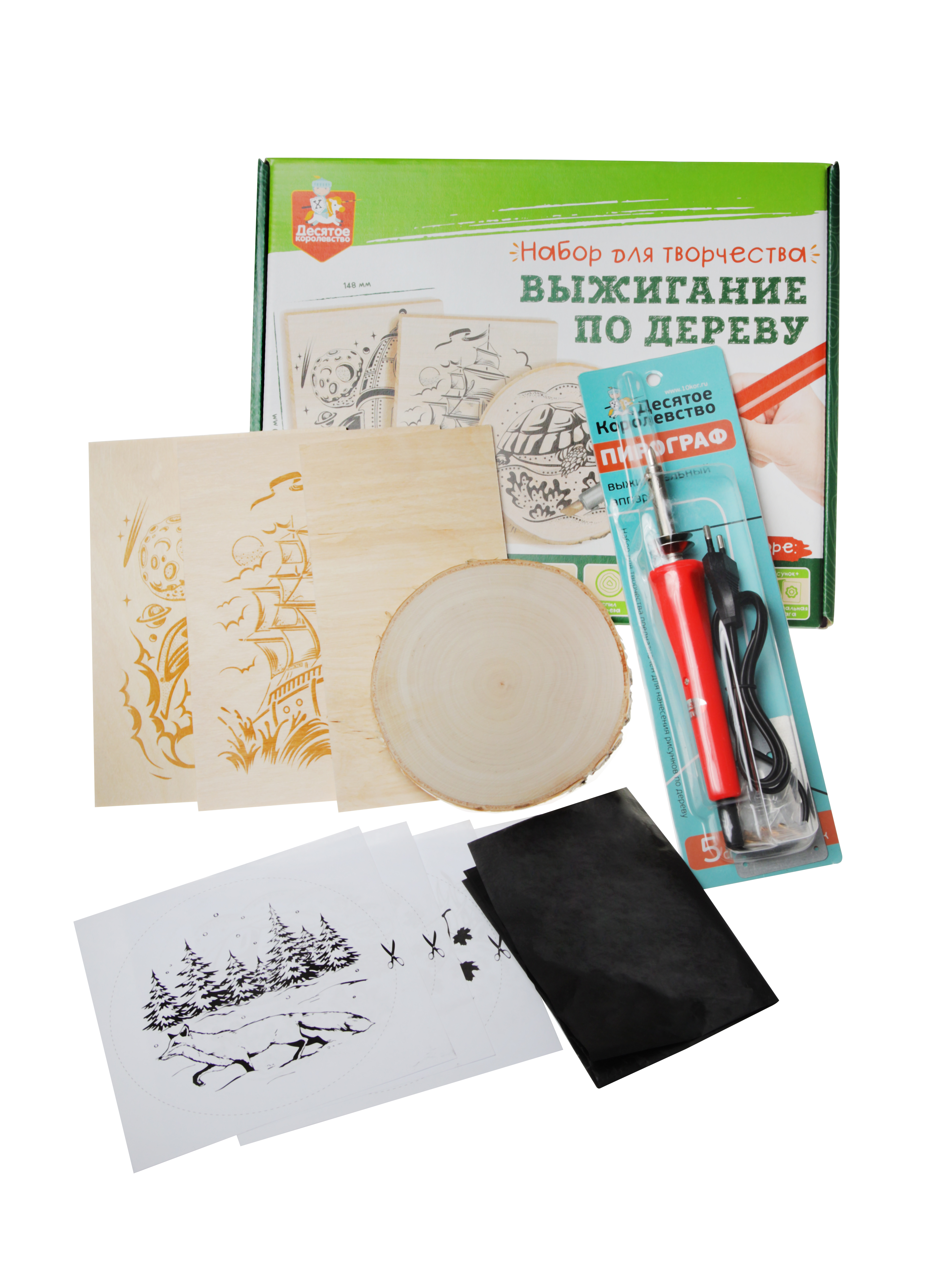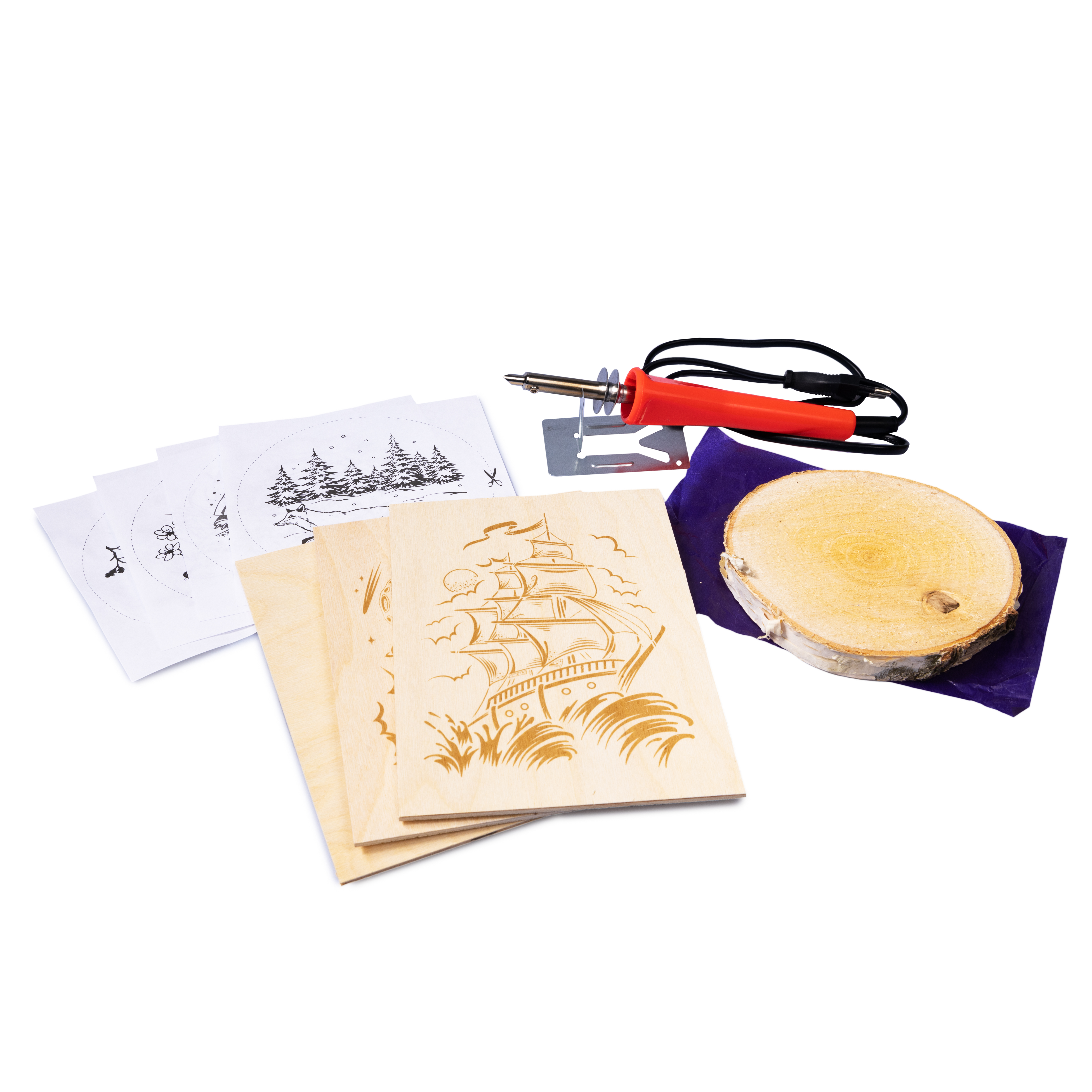 Набор для выжигания по дереву (аппарат с насадками, доски 3 штуки, спил 1 штука)