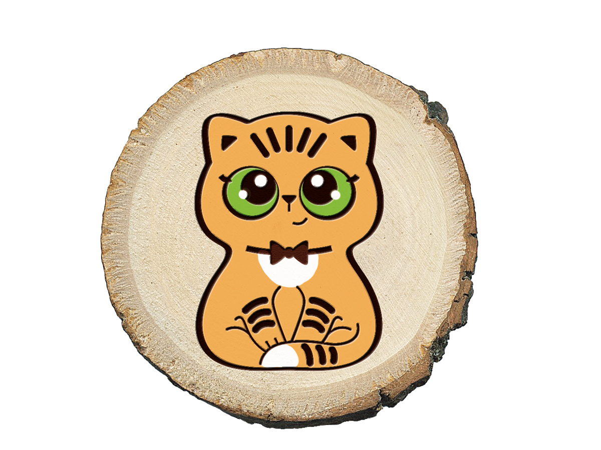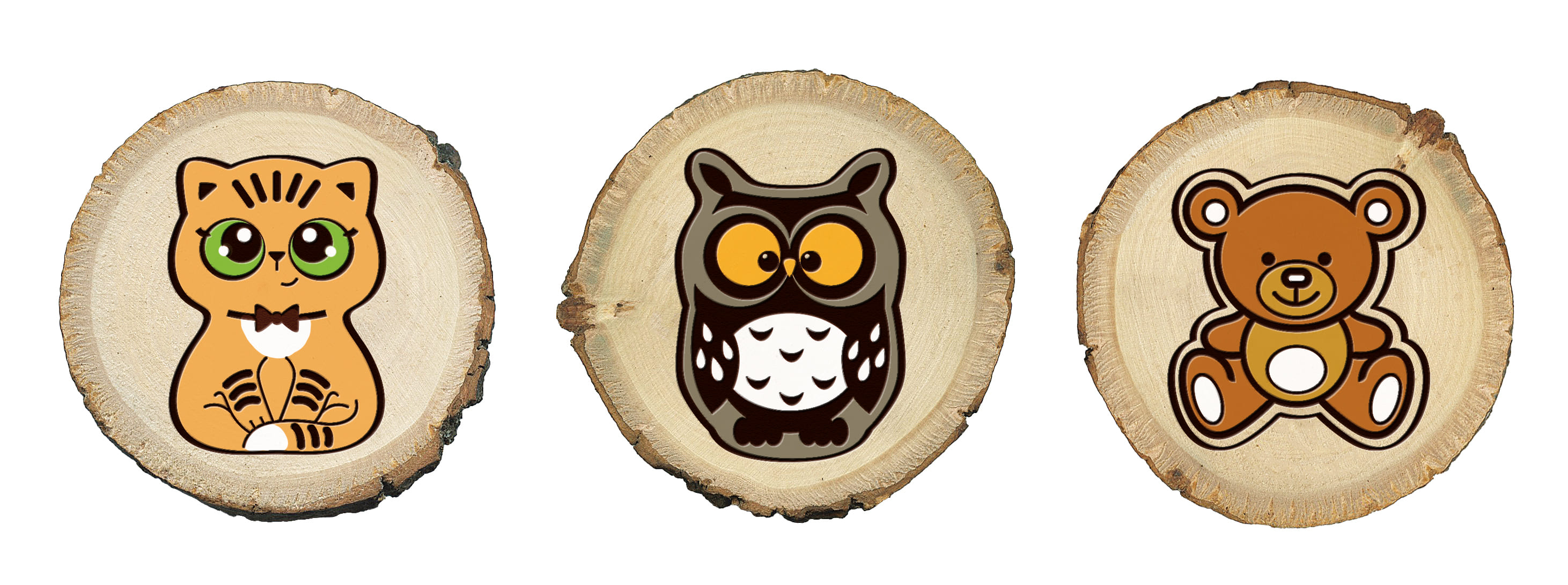 Выжигание на спилах «Котик, Сова, Мишка» (спил малый)