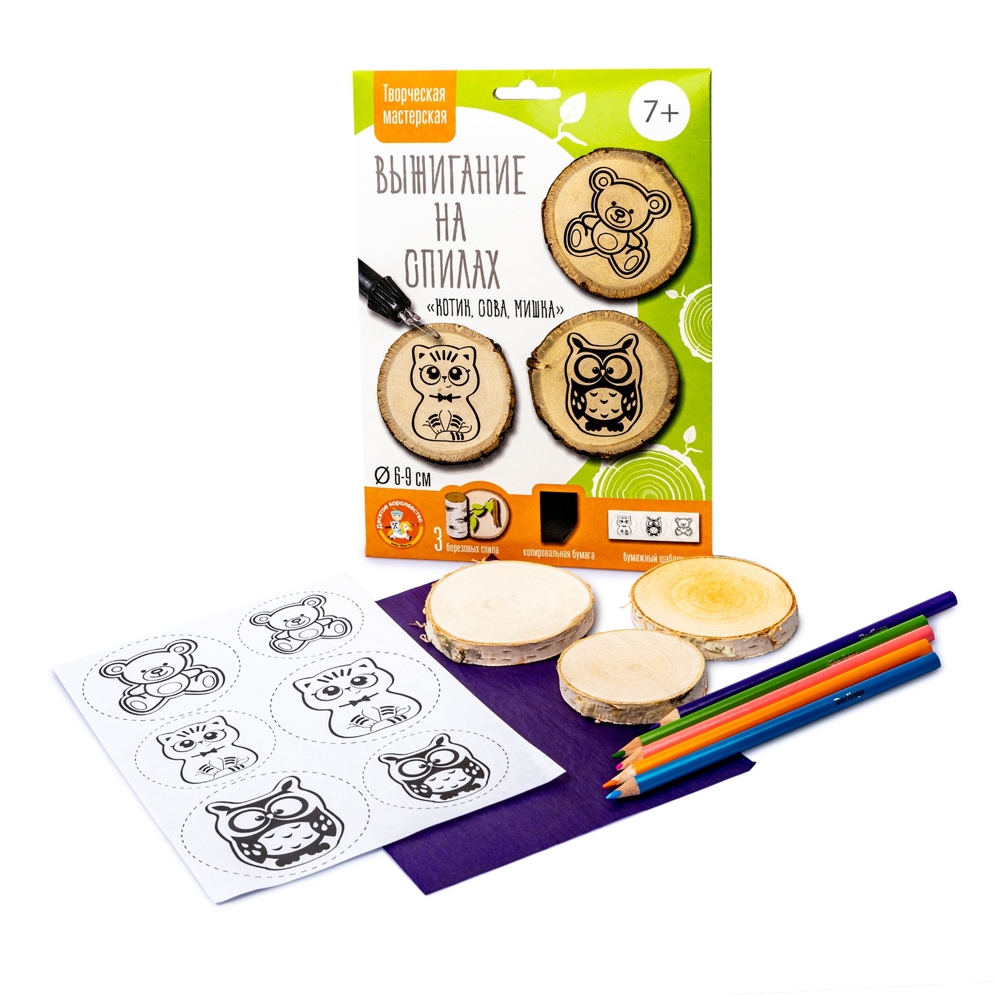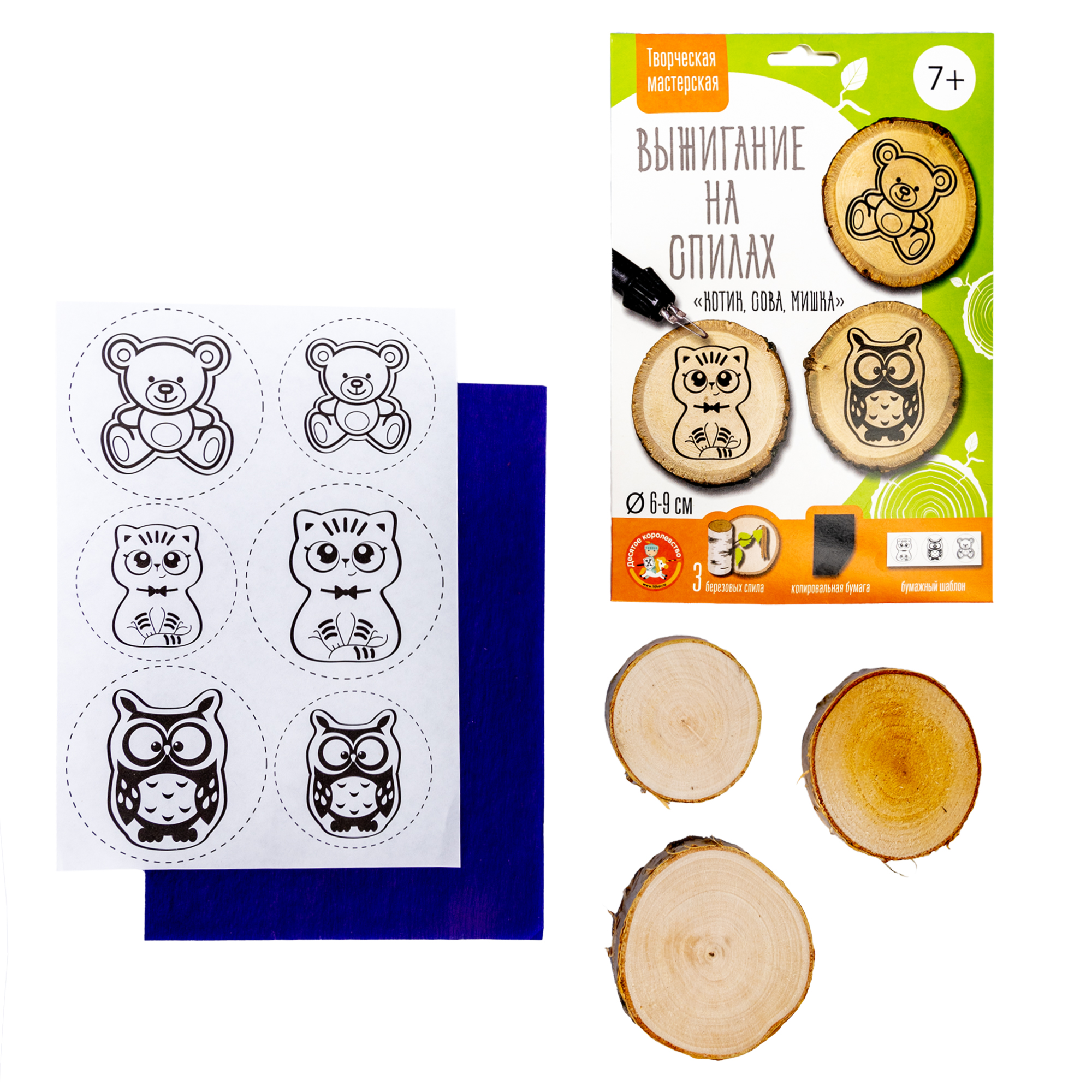 Выжигание на спилах "Котик, Сова, Мишка" (малые) Вместе с этим товаром покупают: